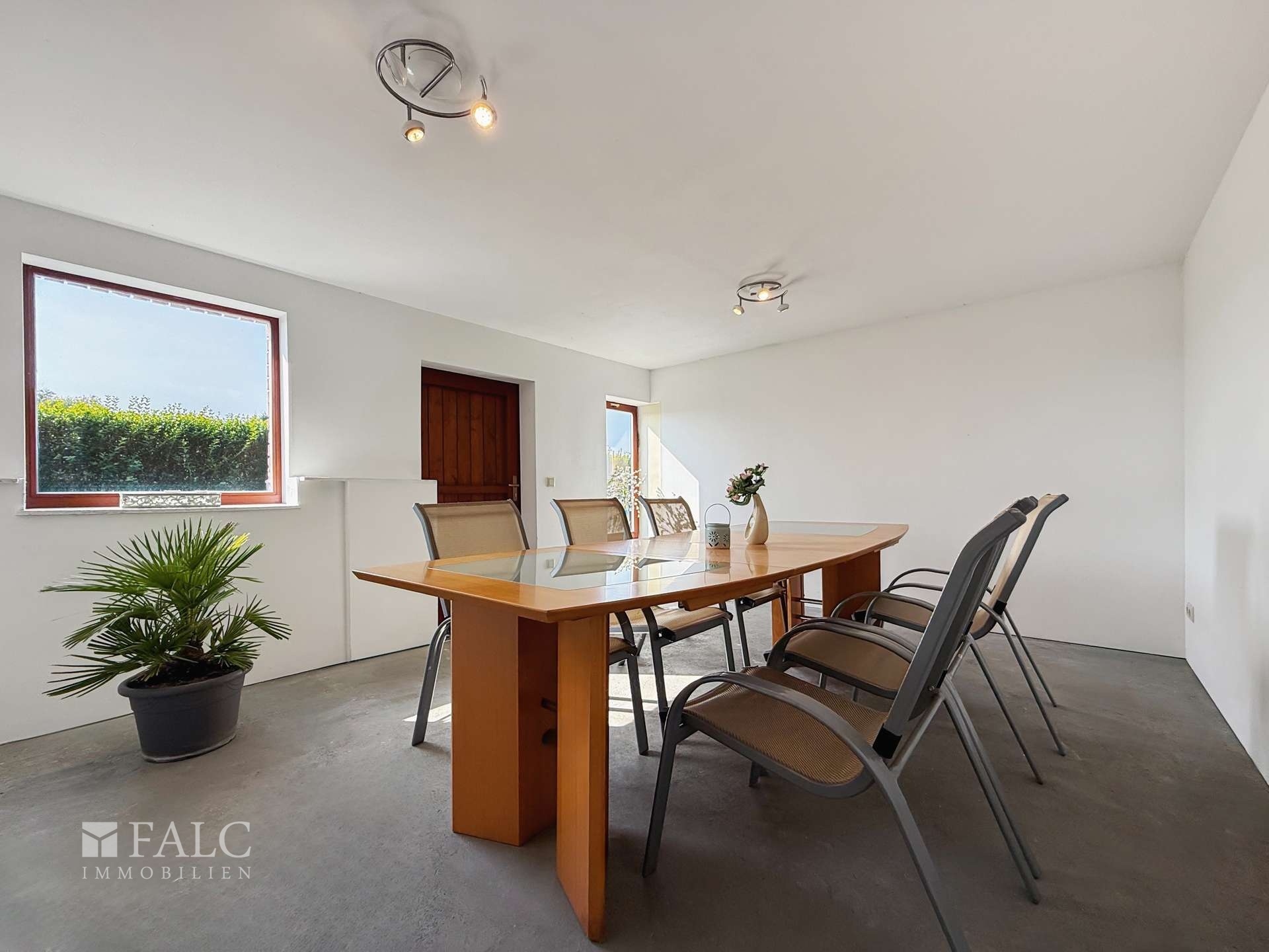 Ein besonderes Plus ist das Nebengebäude auf dem Grundstück. Es beherbergt eine ca. 40 m² große Garage (Länge ca. 10 m) mit elektrischem Tor, in der bequem zwei kleinere Fahrzeuge Platz finden. Zusätzlich stehen Ihnen ein ca. 17 m² großer Partyraum sowie ein gepflegter, gefliester Abstellraum zur Verfügung.