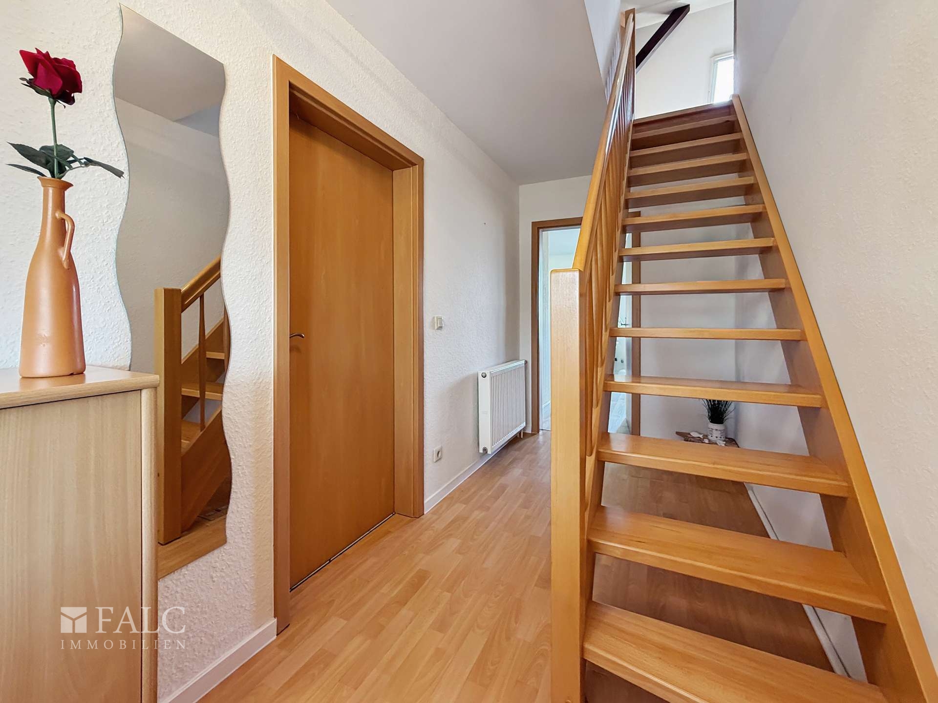 Im Obergeschoss befinden sich ein gemütliches Schlafzimmer, ein Kinderzimmer mit ausgebautem Dachboden als zusätzlichem Schlafbereich sowie ein Abstellraum, der sich bei Bedarf problemlos zu einem Gäste-WC umgestalten lässt.