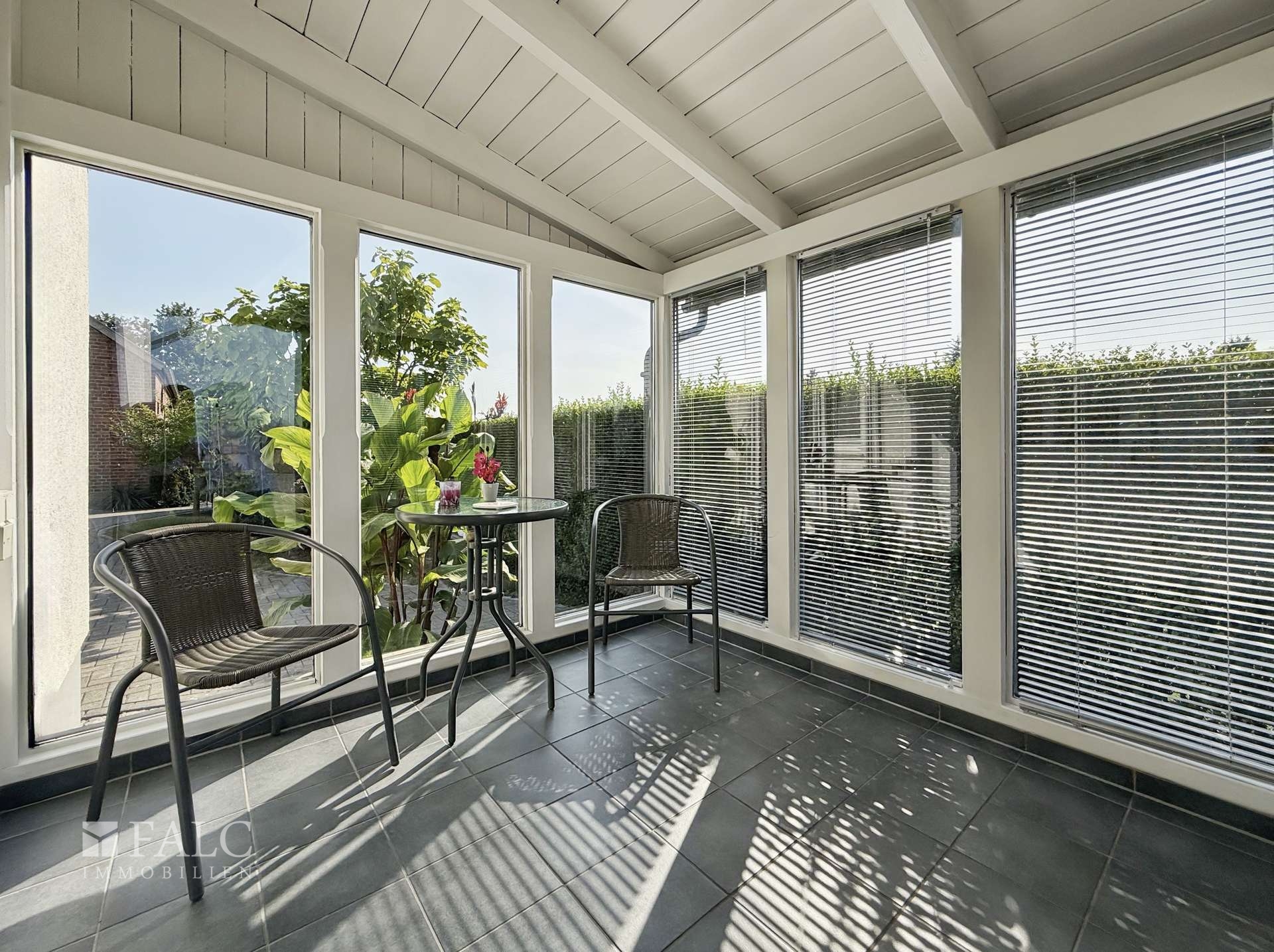 Ein besonderes Highlight ist der lichtdurchflutete Wintergarten, der gleichzeitig den Eingangsbereich des Hauses bildet – ein wunderbarer Ort zum Entspannen mit tollem Blick.