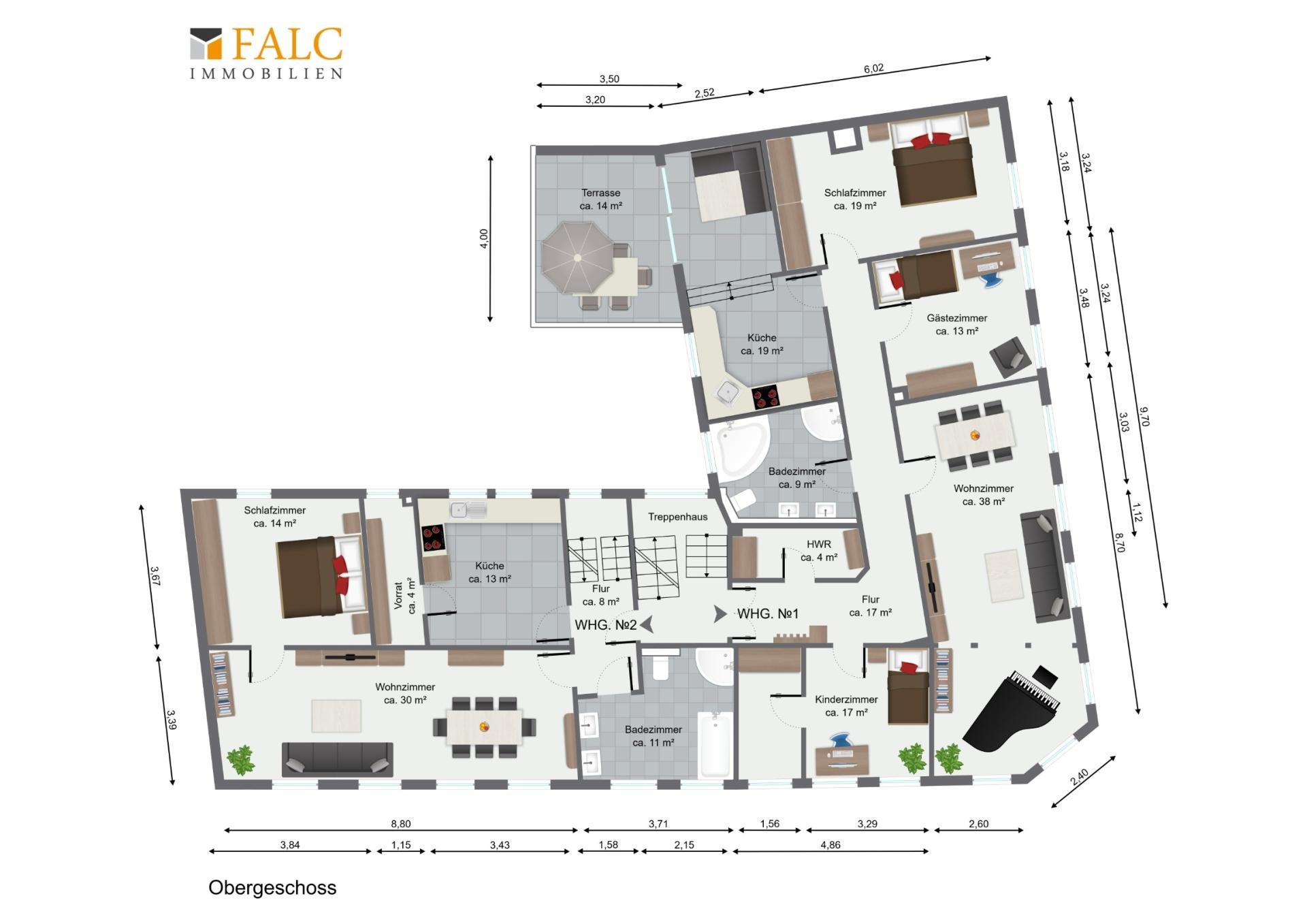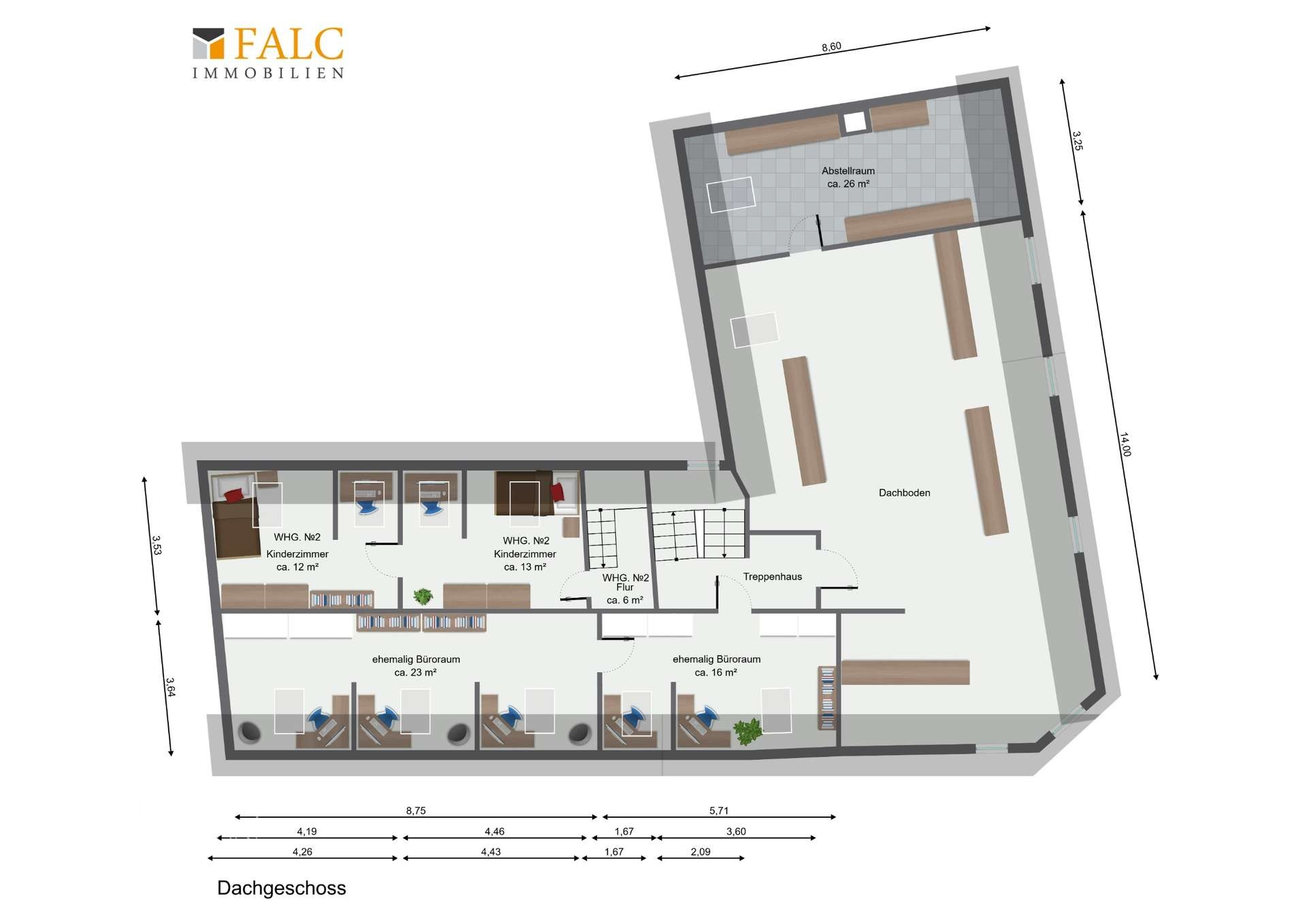 Zur Info, aufgrund der 3D-Perspektive wirken die Räumlichkeiten in der Regel etwas kleiner als in der Realität vor Ort.