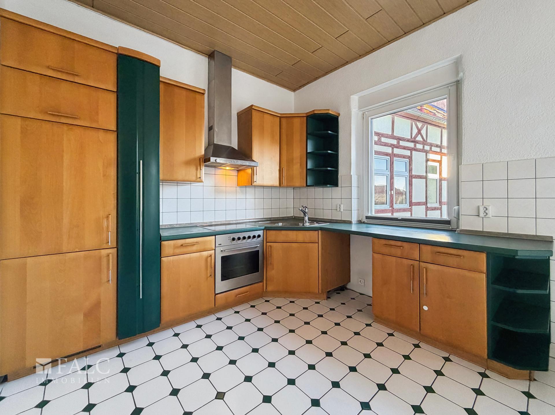 Auf der gegenüberliegenden Seite befindet sich eine ca. 111 m² große 4-Raum-Maisonettewohnung. Sie bietet unter anderem ein geräumiges, helles Badezimmer mit Dusche und Badewanne sowie ein ca. 30 m² großes, lichtdurchflutetes Wohnzimmer. Diese Einheit wurde im Jahr 2000 saniert und eignet sich hervorragend für Familien oder Paare mit Platzbedarf.