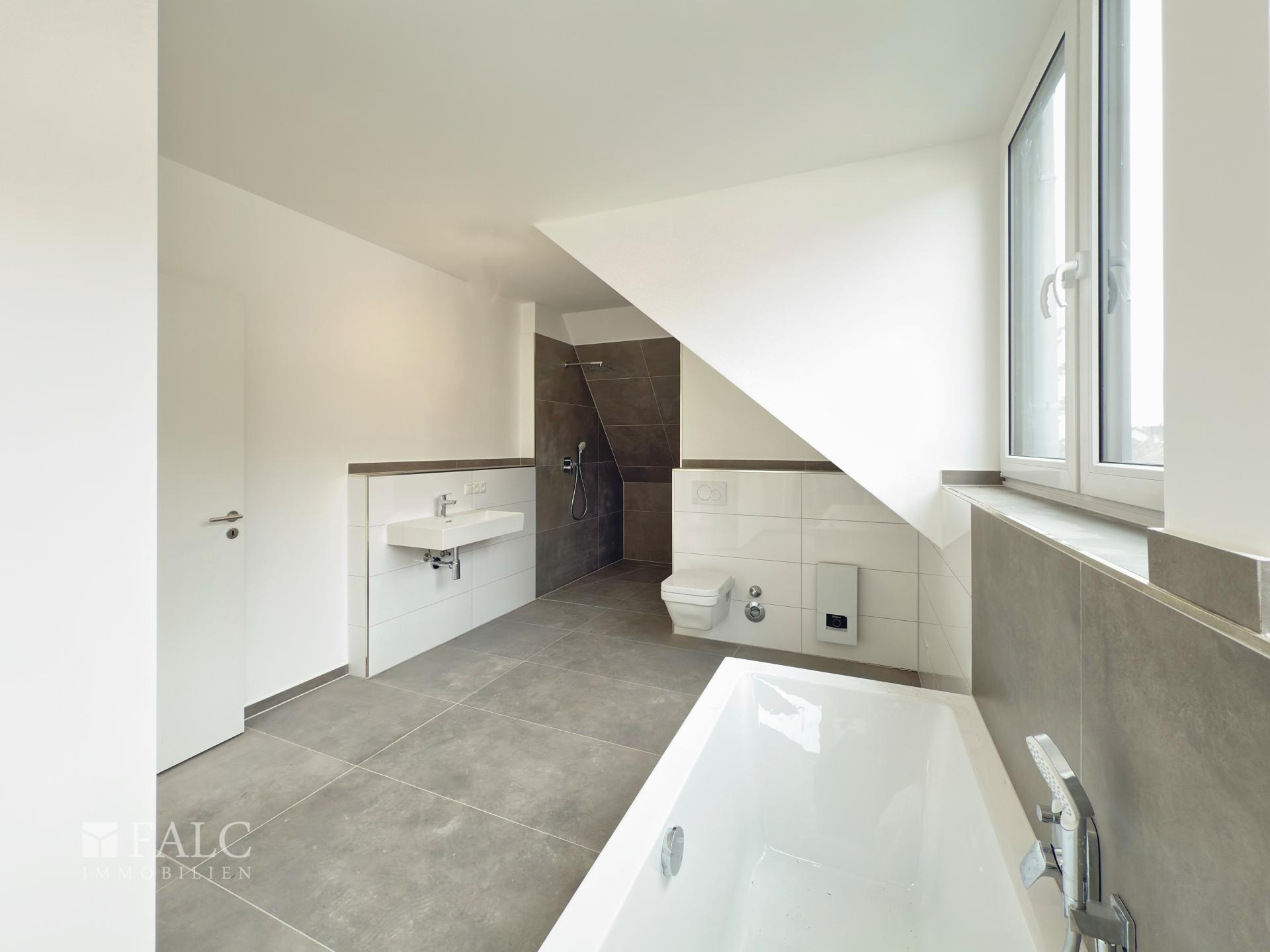- Badezimmer mit hochwertiger Sanitärausstattung, bodengleichen Dusche und Badewanne