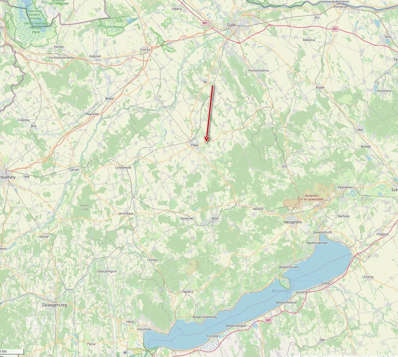 50 km südlich von Györ