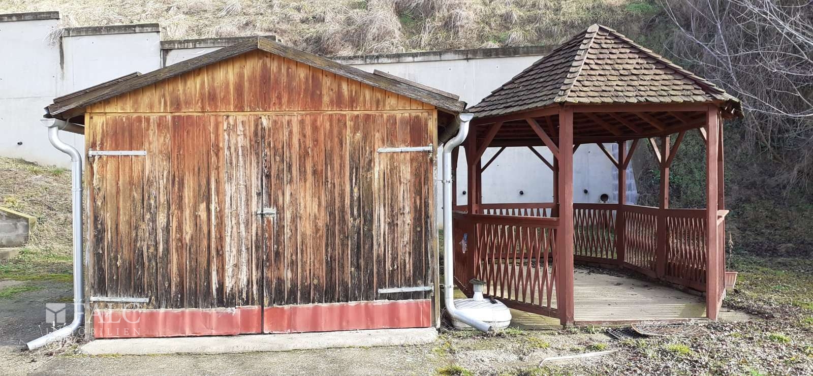 Außerdem verfügt die Immobilie über einen geräumigen Schuppen (siehe Fotos) und einen Dachboden, der über eine Ziehtreppe zugänglich ist.
