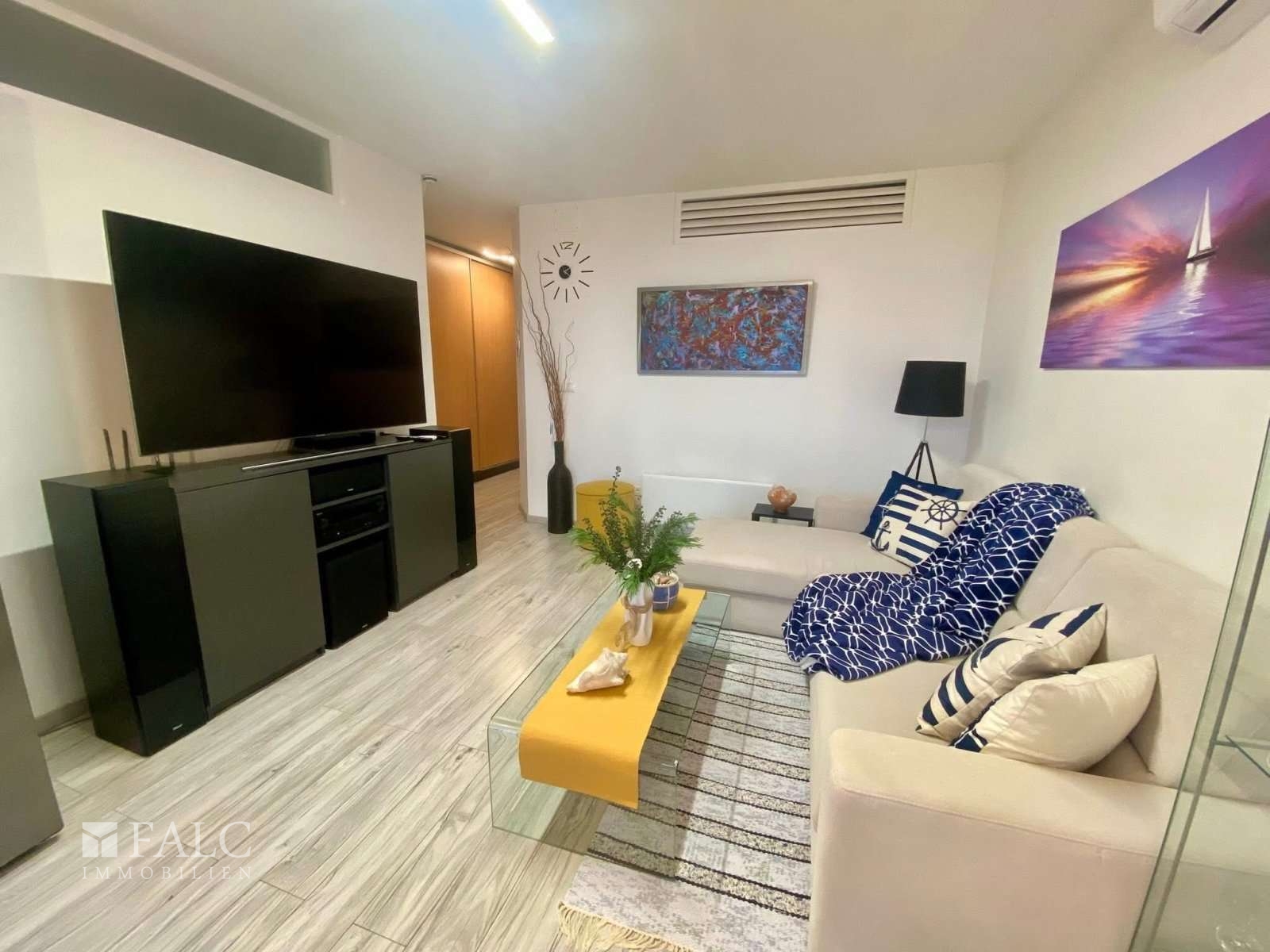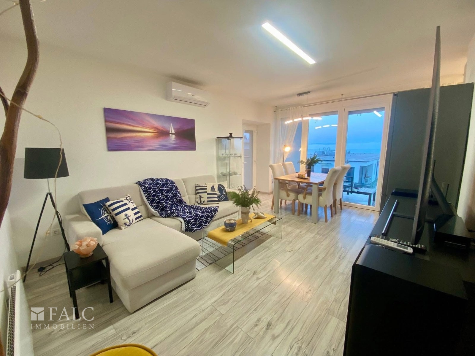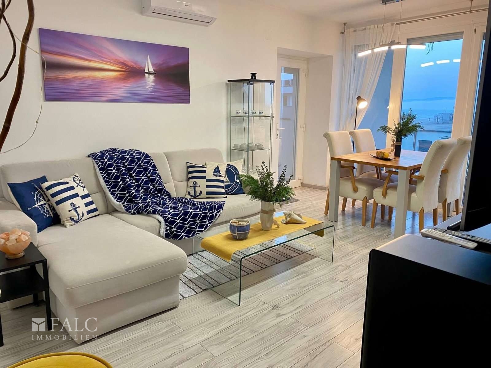 Im Preis inbegriffen sind die abgebildeten hochwertigen Garten- und Innenmöbel, die Einbauküche mit Küchengeräten, das Soundsystem im Wohnzimmer, der große Fernseher, Wandbilder etc.