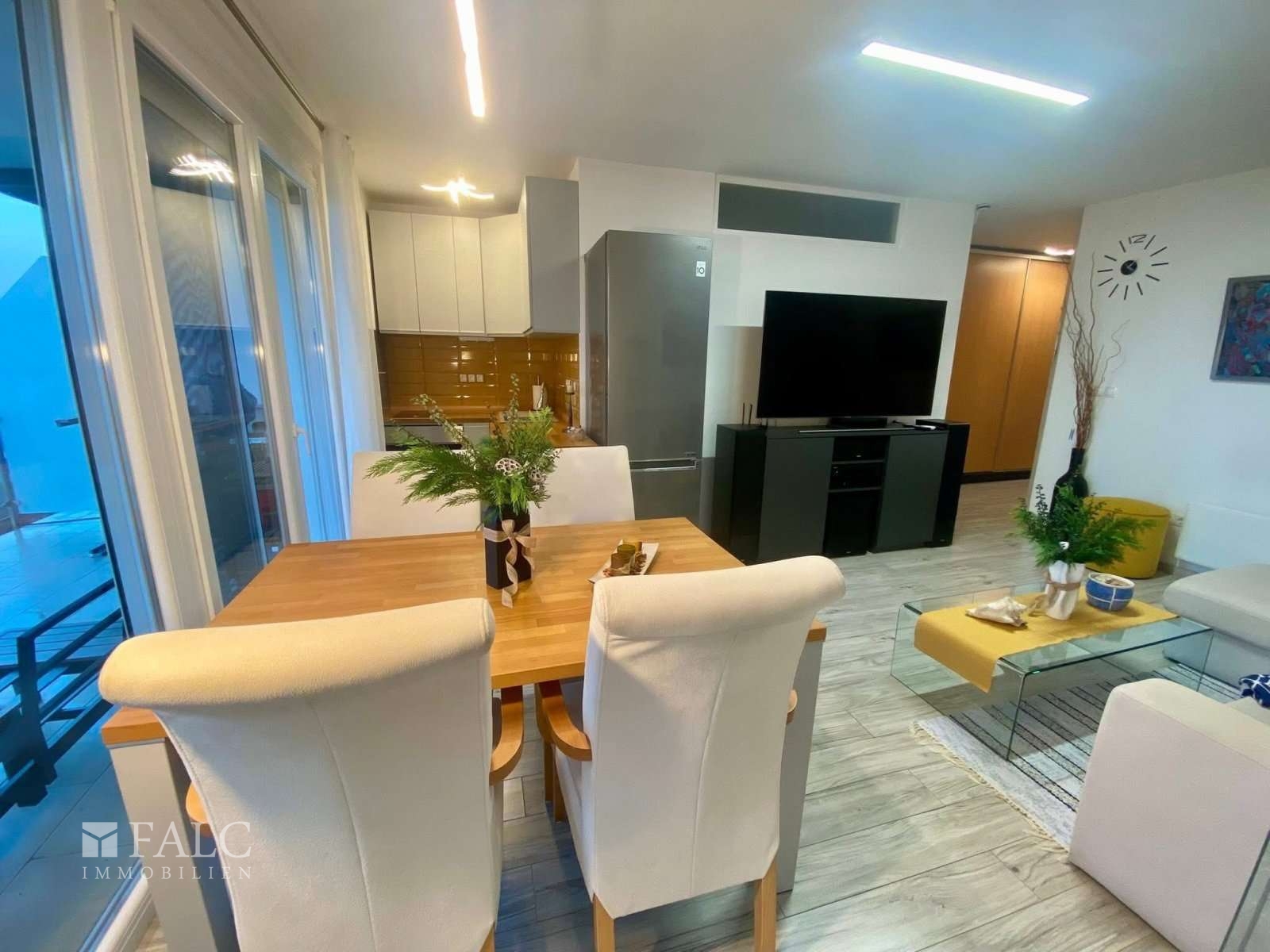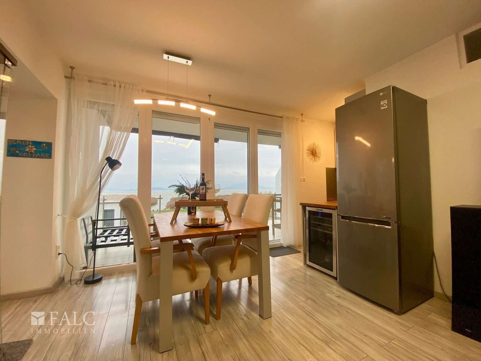 Genießen Sie die unvergessliche Aussicht vom Wohn-/Essbereich mit offener Küche und der großzügigen Terrasse - das ganze Jahr über.