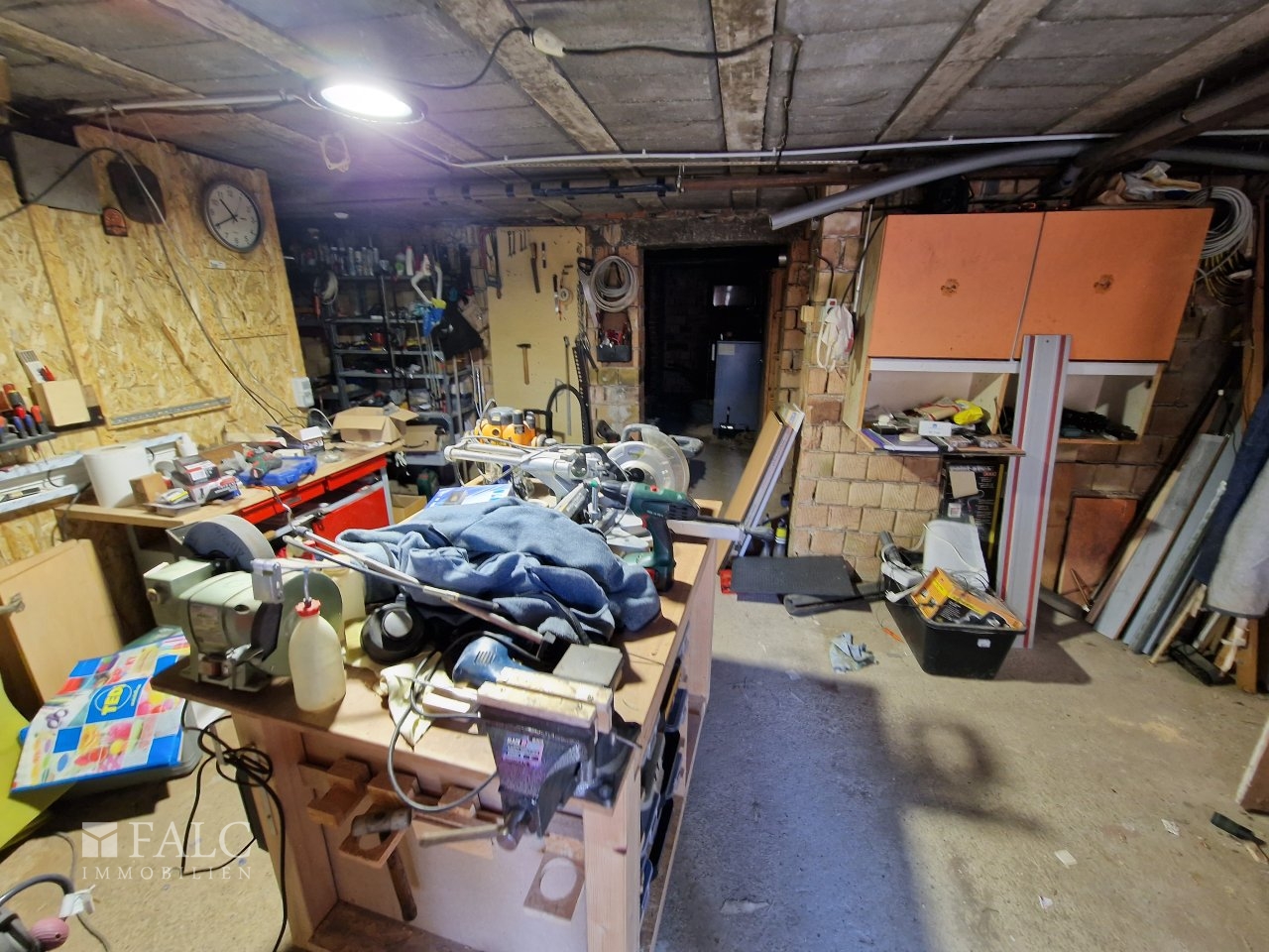Das Haus ist komplett unterkellert und trocken bis auf einen der 4 Kellerräume, sehr solide gebaut. Alle Versorgungs-Anschlüsse sind vorhanden und man kann mit Gas oder Holz heizen.