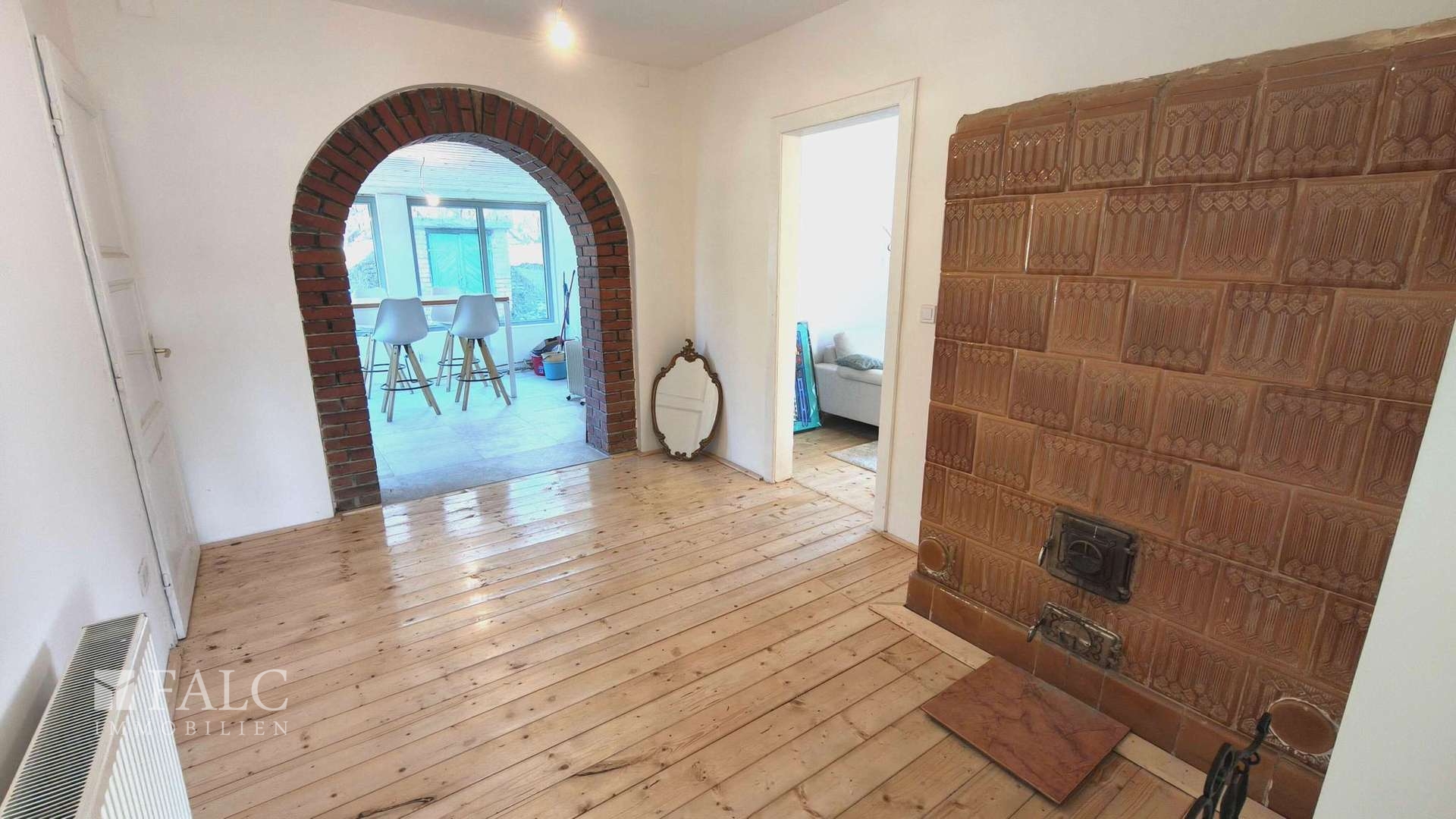 • Ein Kachelofen ist vorhanden: rauchfrei und sauber (kein Hufeisenofen, daher auch bei Stromausfall nutzbar).