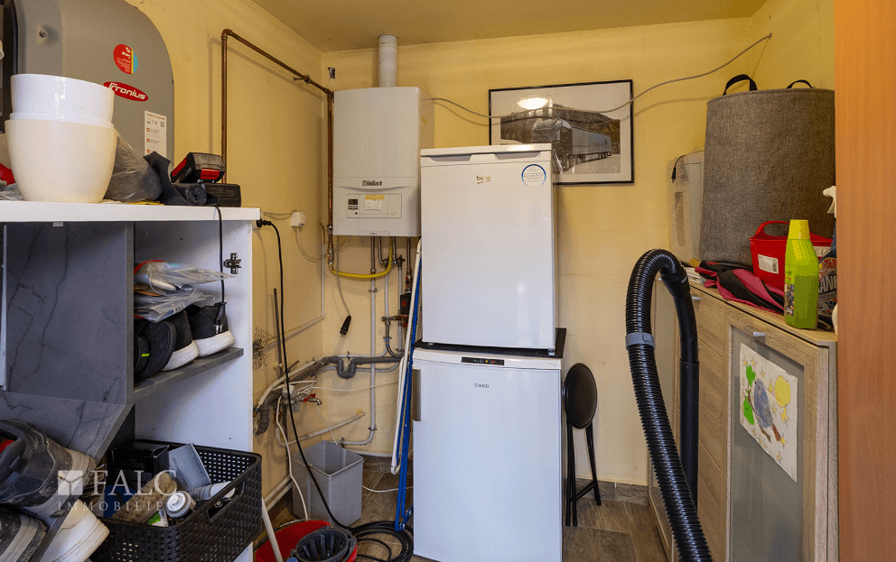 Auch energetisch bietet das Haus vorteilhafte Eigenschaften. Ein Solaranlagensystem unterstützt den Stromverbrauch, während eine Vaillant-Gastherme die Zentralheizung sowie die Warmwasserversorgung gewährleistet.