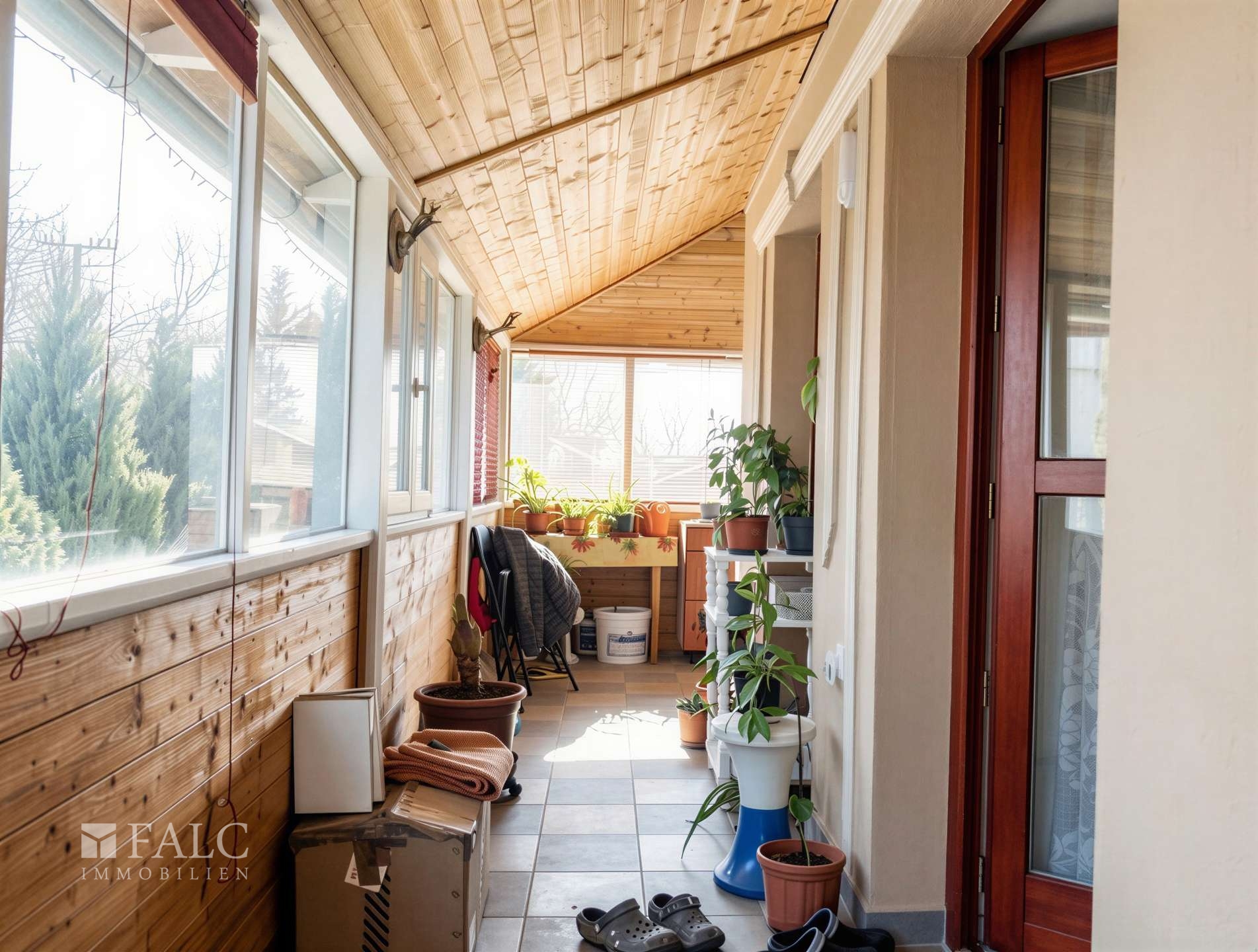 Die Raumaufteilung ist durchdacht und familienfreundlich. Im Haupthaus, das ca. 70 m² Wohnfläche, ein Wohnzimmer mit amerikanischer Küche, zwei Schlafzimmer, ein Ankleidezimmer und ein Badezimmer sorgen für Komfort. Ein besonderes Highlight ist die 35 m² große, überdachte Terrasse, die einem Wintergarten gleicht und von Frühling bis Herbst zu den beliebtesten Plätzen des Hauses zählt, aber auch bei schlechtem Wetter als zusätzlicher Wohnraum genutzt werden kann.