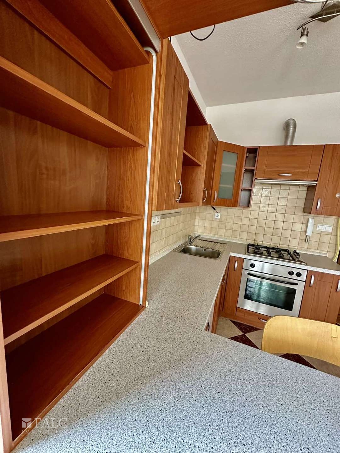 Die Wohnung ist auf der 3. Etage und ist 40 m² groß und besteht aus einem Wohnzimmer mit offener Küche, einem Schlafzimmer, einem Einbauschrank und einem Badezimmer.