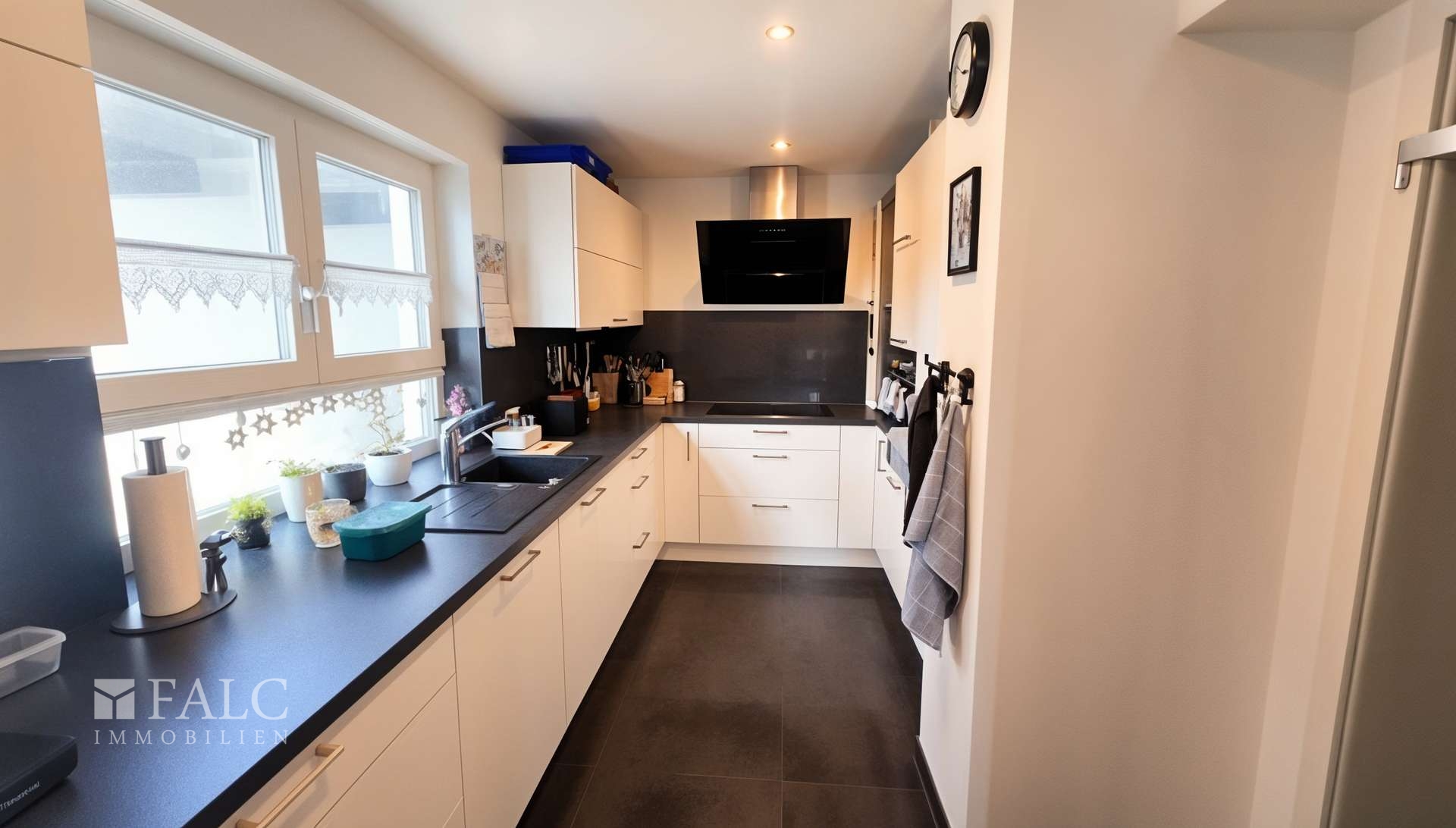 • Einbauküche: Die moderne Küche ist nicht nur funktional, sondern auch ein echter Blickfang. Mit hochwertigen Elektrogeräten, viel Stauraum und eleganter Gestaltung lädt sie zum gemeinsamen Kochen und Genießen ein.