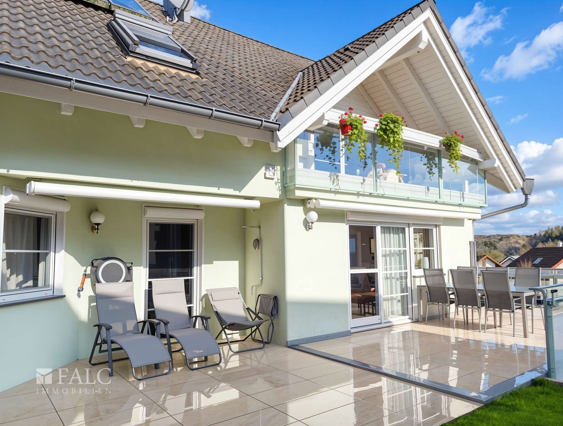 Große Terrasse mit zwei Markisen: Ein geschützter Lieblingsplatz für sonnige Nachmittage, entspannte Abende oder gesellige Grillrunden.
