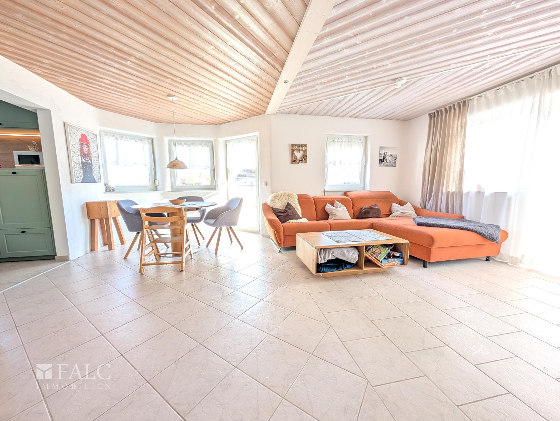 Diese besondere Wohnung fühlt sich an wie ein Einfamilienhaus – mit viel Platz, zusätzlichen Nutzraum (Hobbyraum und Büro) und einer ruhigen Lage nahe der Natur.