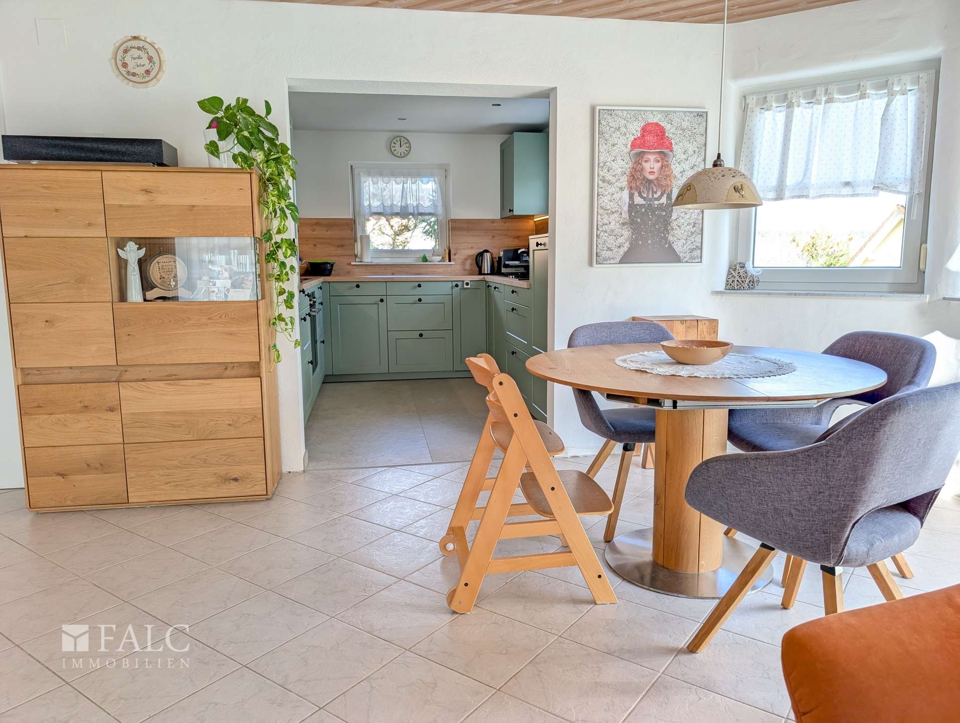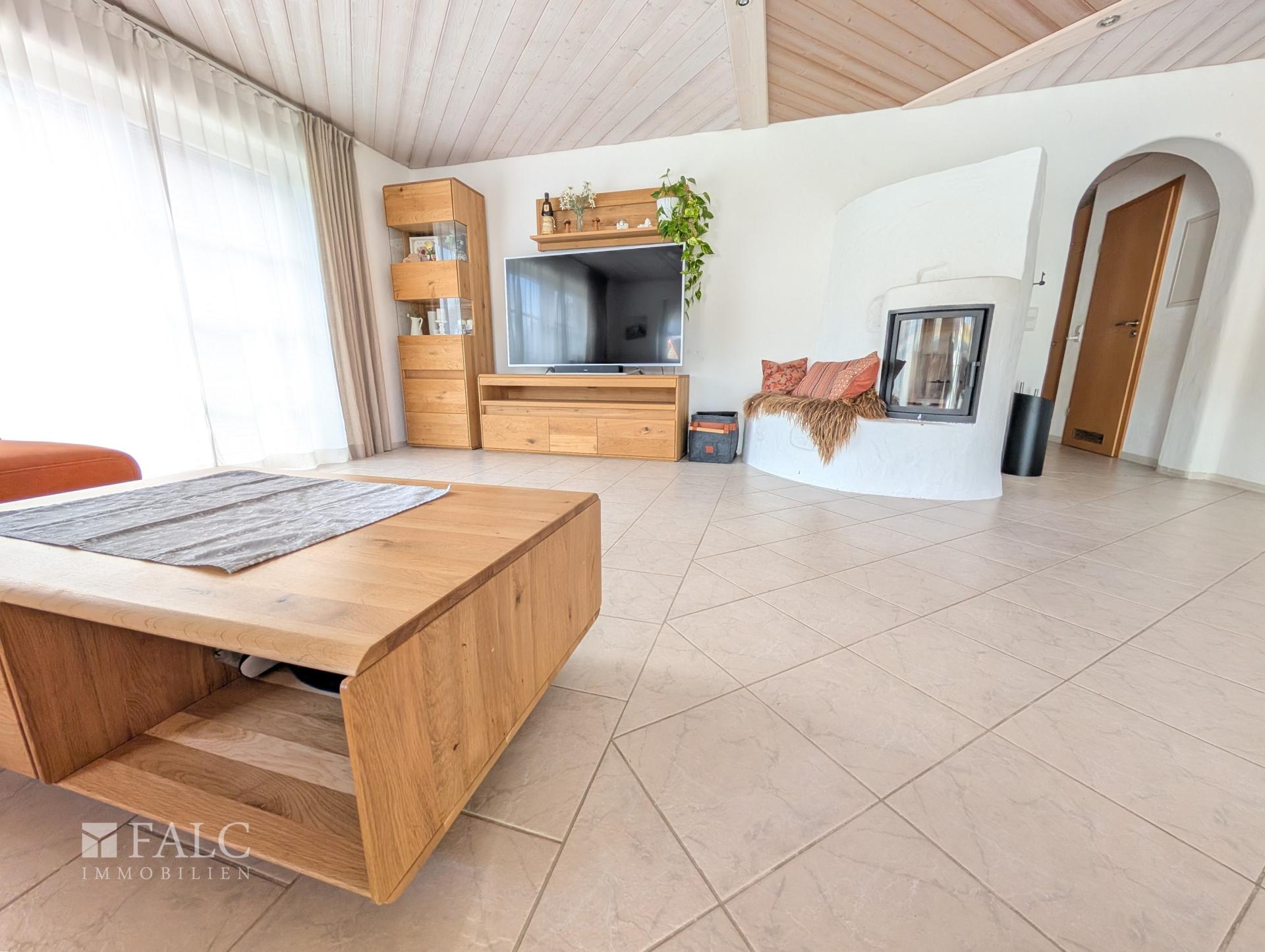Wohn- und Essbereich mit Kachelofen (2023): Ein Raum, der Wärme ausstrahlt – ideal für gemütliche Abende und gesellige Runden.
