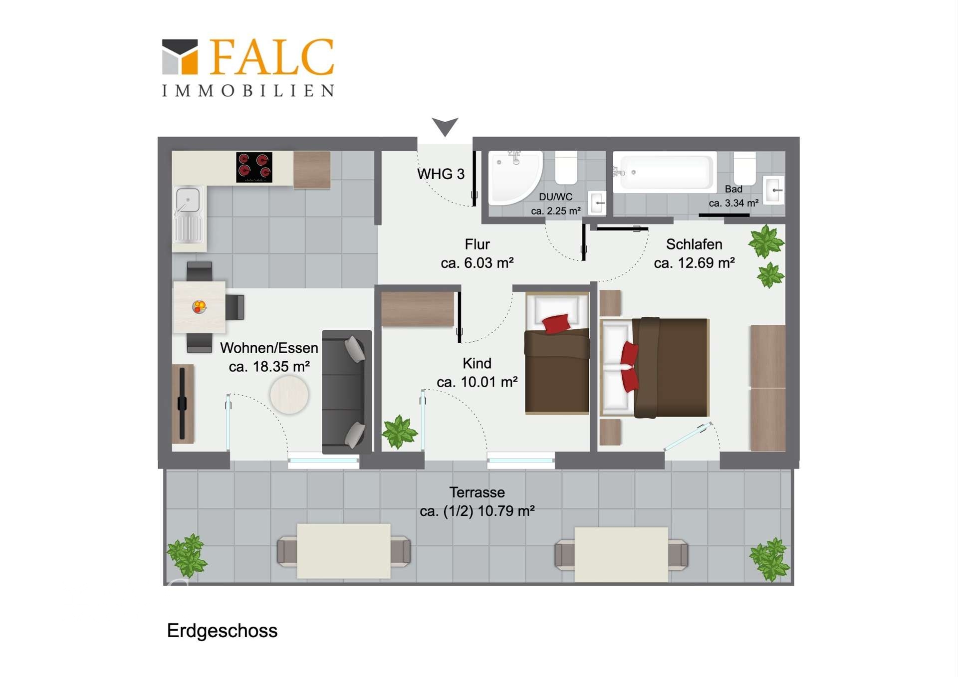 Mehrere ETW im Süden von Bobingen projektiert. hier 3 ZKB beispielhaft