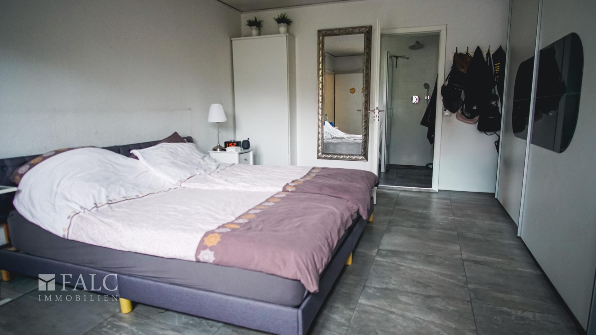 Vom Wohnbereich aus betreten Sie ein Schlafzimmer mit eigenem Bad inklusive WC und Sie haben Zugang zu einer geschützten Terrasse seitlich des Hauses.
