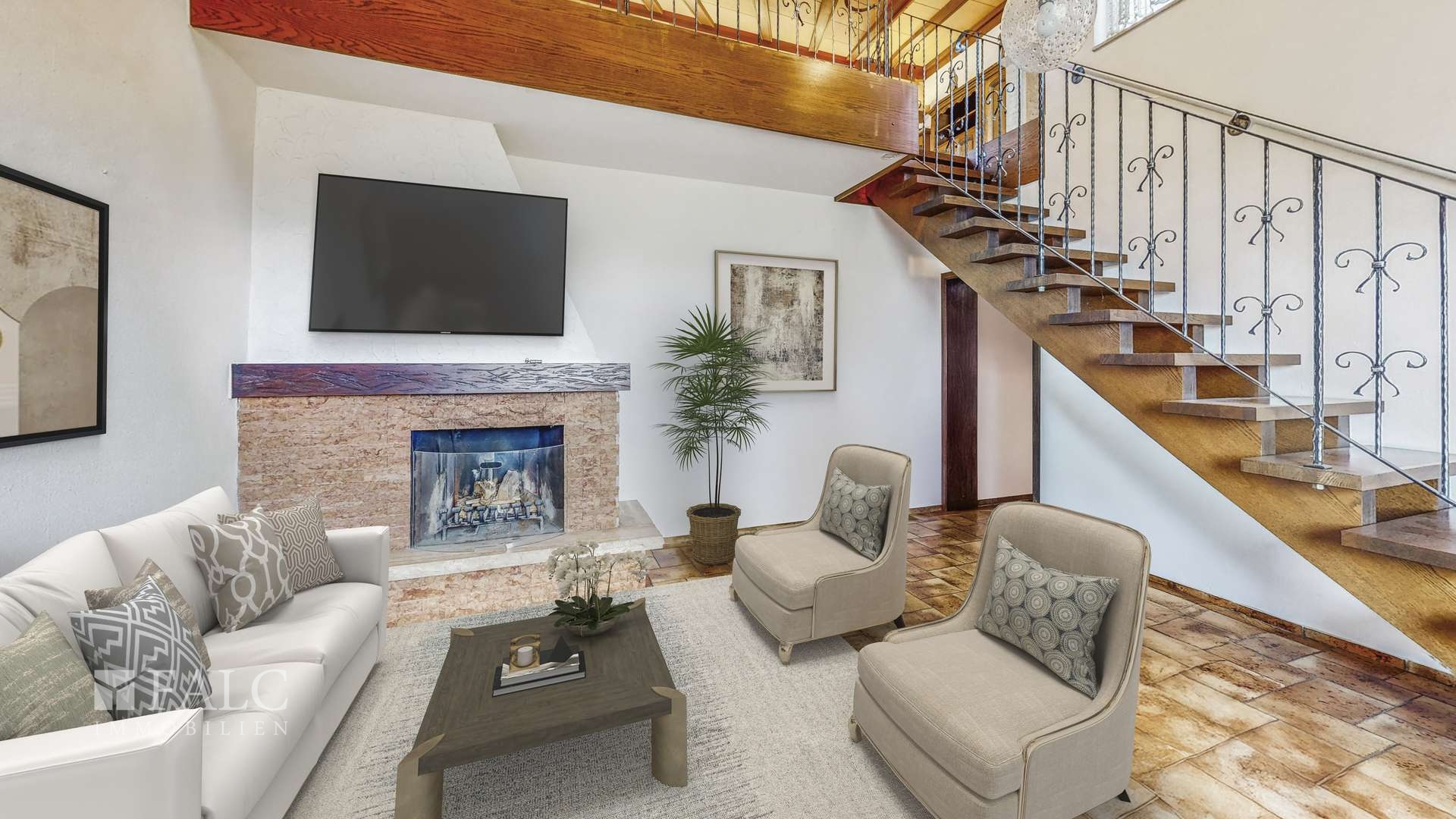Über eine offene Treppe gelangen Sie ins gemütliche Kaminzimmer, wo Sie erholsame Abende mit Freunden und Familie verbringen können. Von hier aus erreichen Sie ein weiteres Zimmer sowie die Terrasse und den liebevoll angelegten Garten. Lassen Sie Ihrem grünen Daumen freien Lauf und gestalten Sie Ihre kleine Oase!