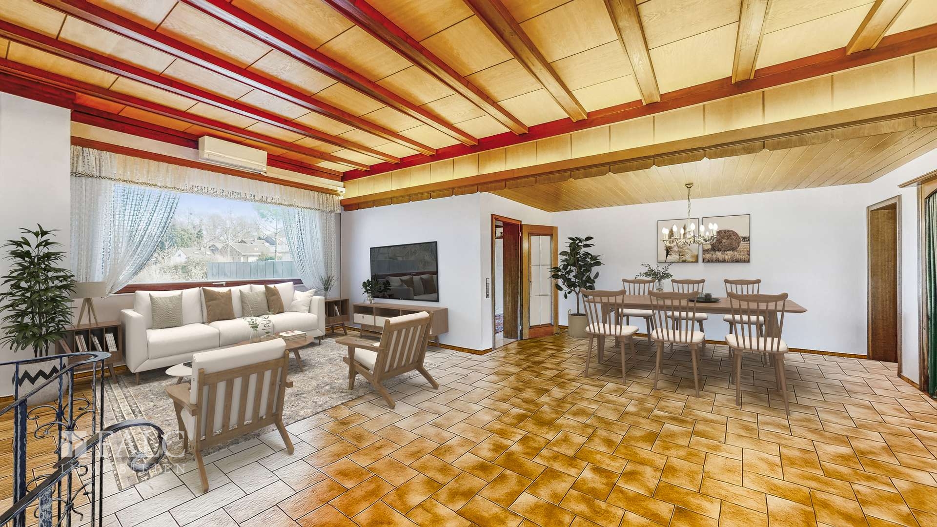 Zusätzliche Annehmlichkeiten wie sieben geräumige Kellerräume, ein Kühlraum, ein Schwimmbad mit Gegenstromanlage und Sauna sowie eine praktische Doppelgarage mit elektrischem Torantrieb machen dieses Haus zu einem besonderen Lebensraum.