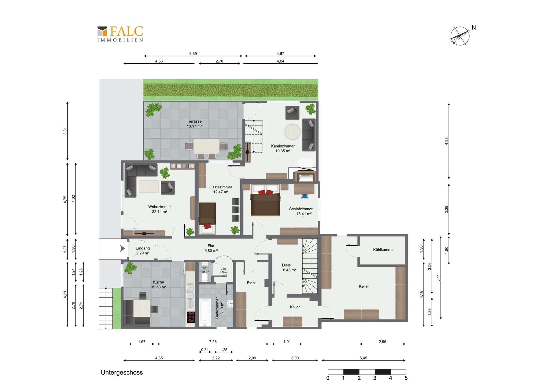 Im Untergeschoss erwartet Sie eine separat zugängliche Einliegerwohnung mit etwa 78 m², 2 hellen Zimmern, einer Essküche, einem Bad und einem WC. Planen Sie eine Vermietung, können Sie hier mit einer attraktiven monatlichen Kaltmiete von etwa 1.000,00 € rechnen.