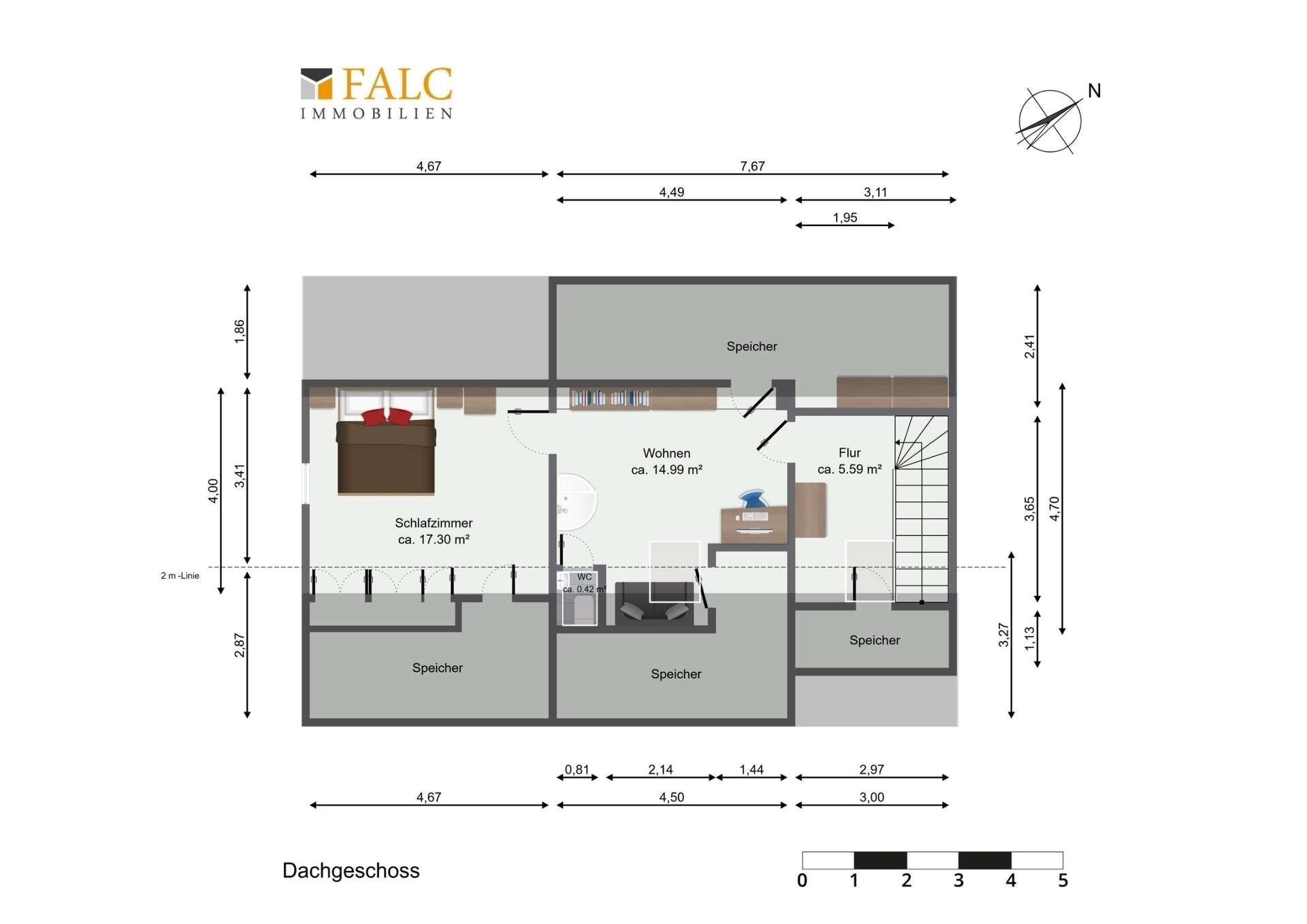 Über die stilvolle Marmortreppe erreichen Sie das Dachgeschoss, wo Sie einen Raum betreten, der ideal als Arbeits- oder Spielzimmer genutzt werden kann. Weiterhin finden Sie hier ein Schlafzimmer und ein separates WC. Vier Dachspeicher bieten zusätzlichen Stauraum.