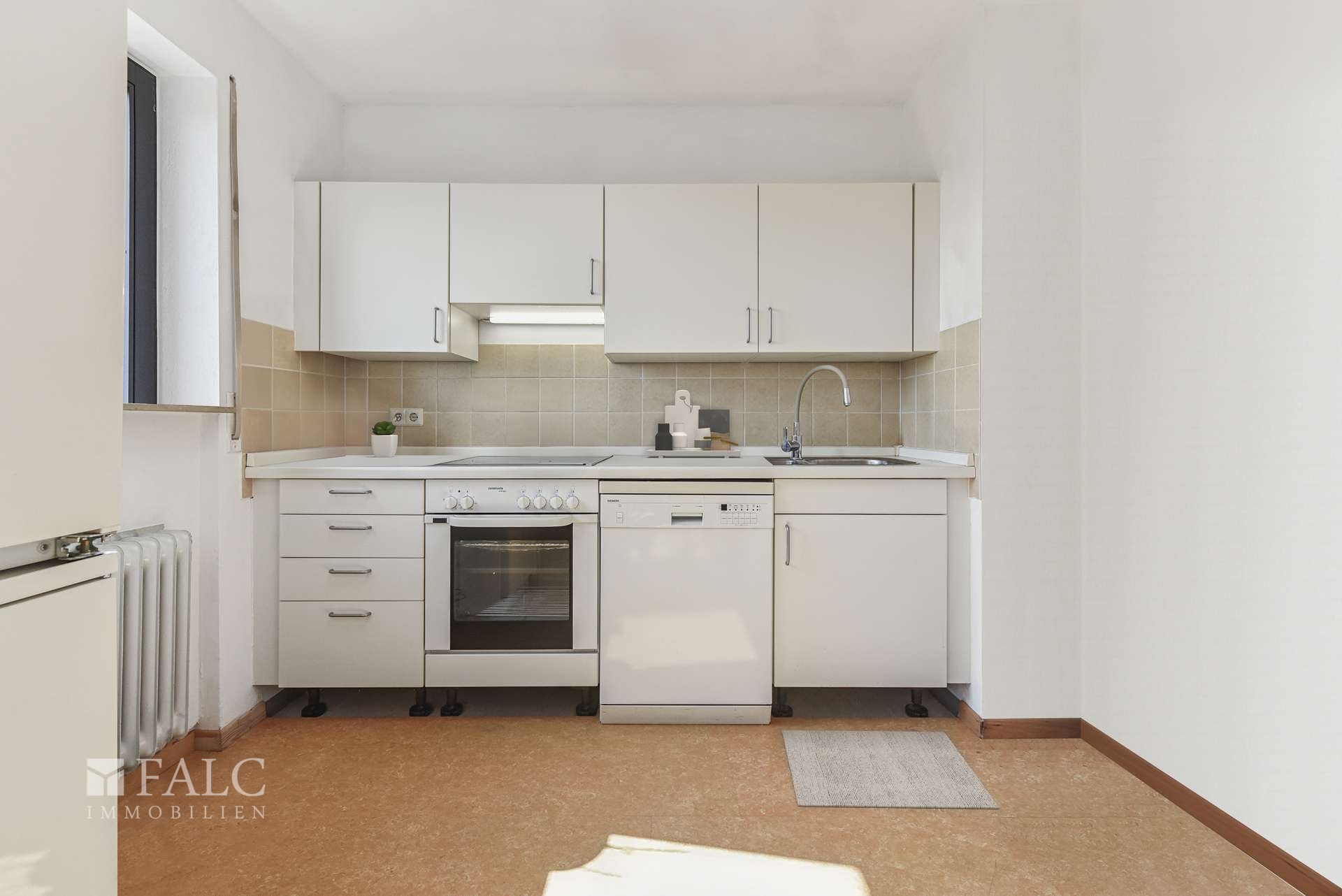 Die Küche – direkt neben dem Essbereich – bietet genügend Stauraum für Geschirr und Vorräte und ist mit einem Constructa-Backofen, einem Cerankochfeld sowie einem Siemens-Geschirrspüler ausgestattet. Hier wird das Kochen garantiert zum Vergnügen!