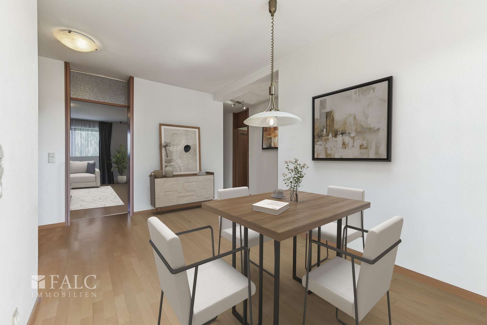 Der einladende Flur empfängt Sie herzlich und führt Sie direkt in den lichtdurchfluteten Essbereich. Zu Ihrer Linken öffnet sich das großzügige Wohnzimmer mit rund 21 m², perfekt für gemütliche Stunden mit der Familie oder gesellige Abende mit Freunden.