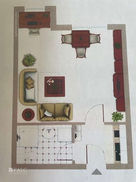 Die integrierte Kochnische fügt sich harmonisch in den Wohnbereich ein und bietet alles Nötige für den Alltag. Sie ist praktisch angeordnet und lässt sich funktional einrichten – perfekt für kompakte Wohnverhältnisse mit Stil.