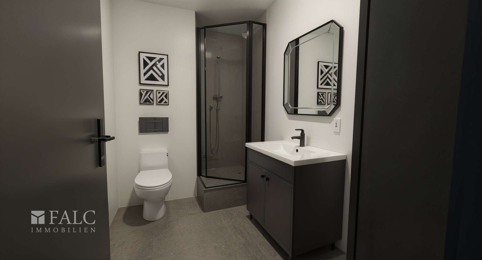 Das innenliegende Badezimmer ist mit einer Dusche ausgestattet und gepflegt – ein funktionaler Rückzugsort für den Start in den Tag. Ein privater Kellerraum bietet zusätzlichen Stauraum für Dinge des täglichen Bedarfs oder Saisonales.