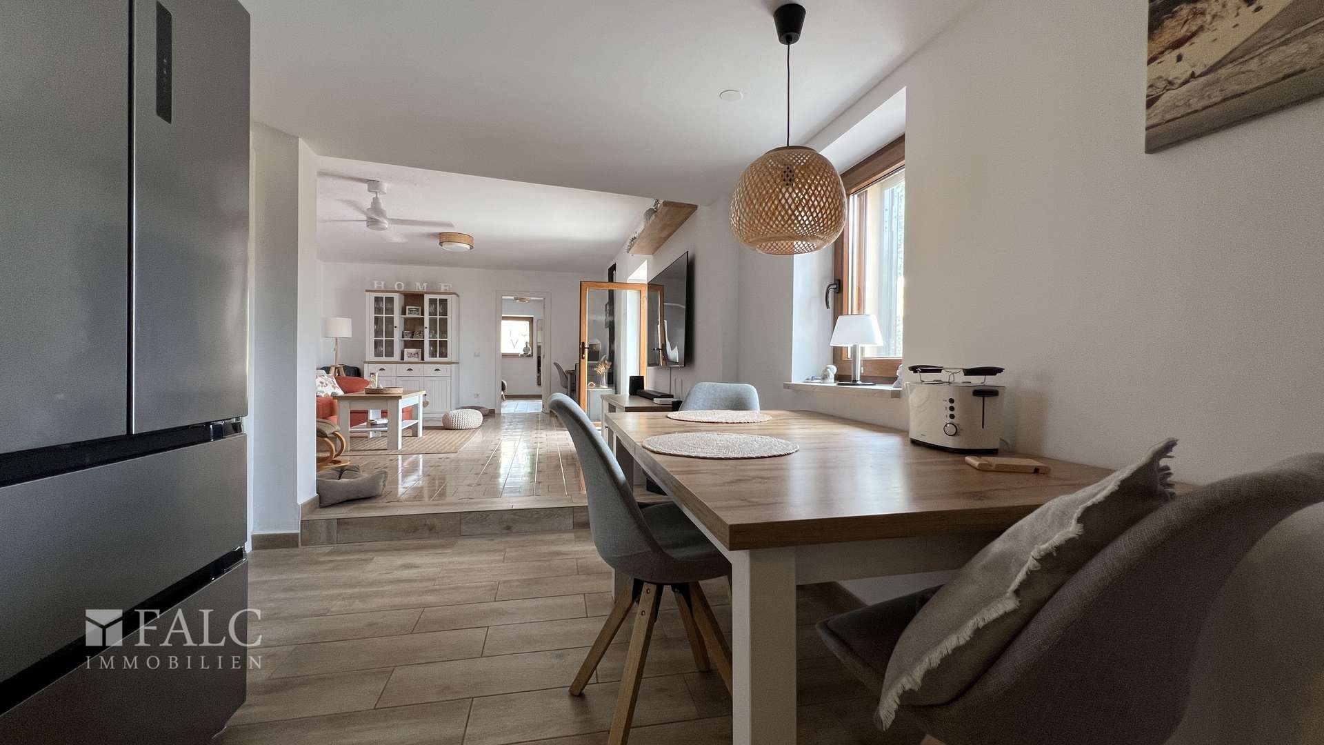 Das Haupthaus wurde 2023 komplett kernsaniert und überzeugt mit einem offenen Wohnkonzept: helles Wohnzimmer mit Pelletofen, gemütliche Einbauküche, ein Schlafzimmer, ein modernes Bad und ein praktischer Hauswirtschaftsraum.