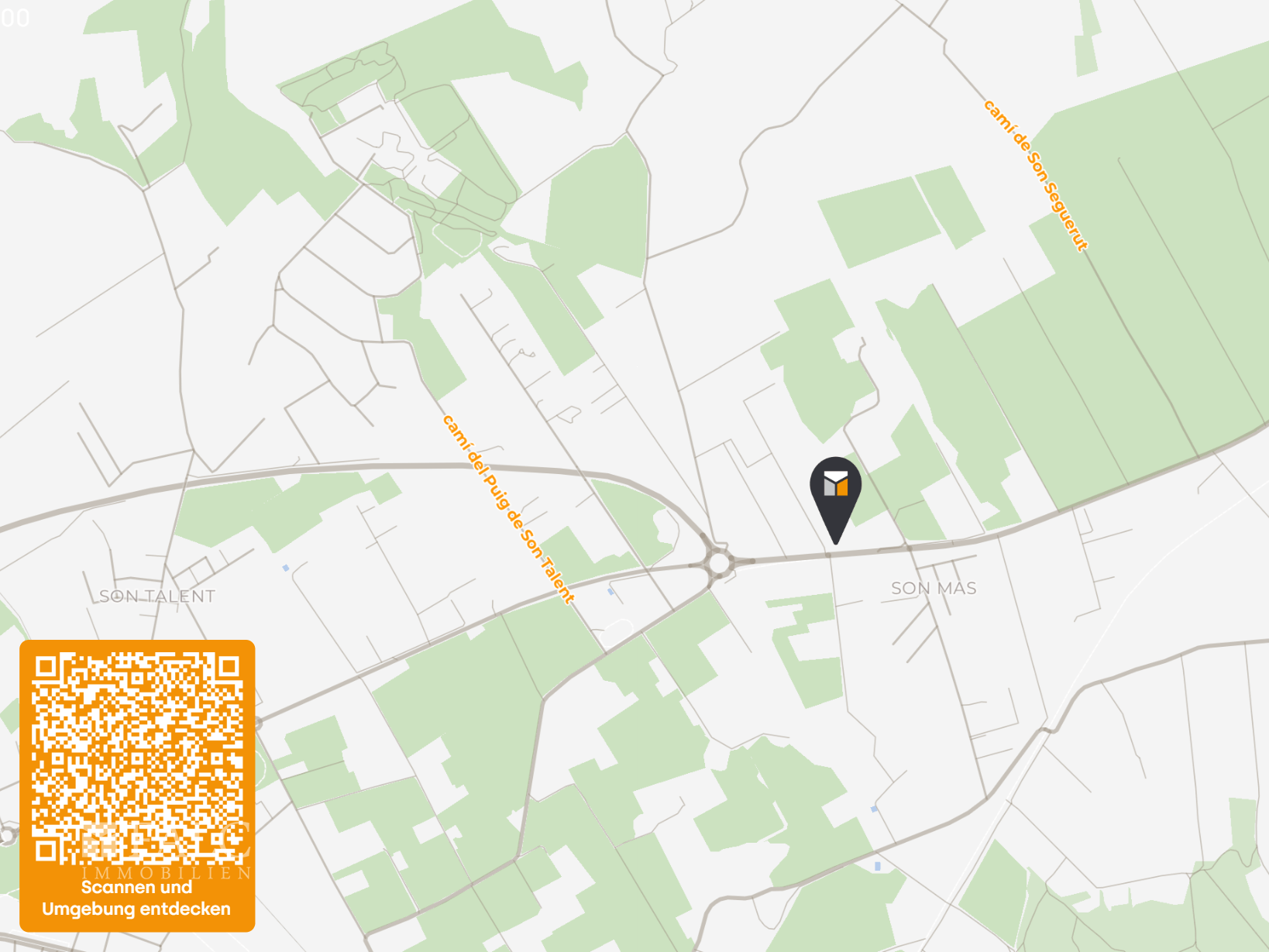 Die Umgebung ist geprägt von sanften Hügeln, mediterranen Feldern und mallorquinischer Ruhe – ein idealer Rückzugsort, der dennoch beste Anbindungen bietet.