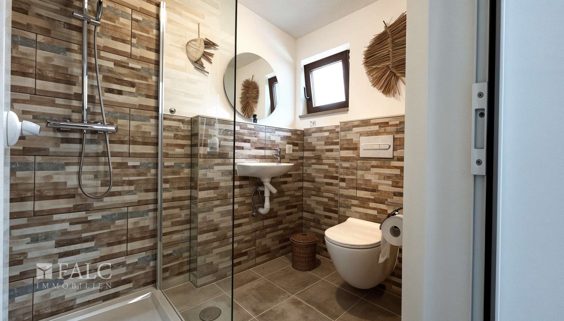 Der separate Anbau mit eigenem Eingang bietet ein Gästezimmer mit Bad sowie einen Geräte-/Solarraum – ideal für Besucher oder als private Rückzugsmöglichkeit.