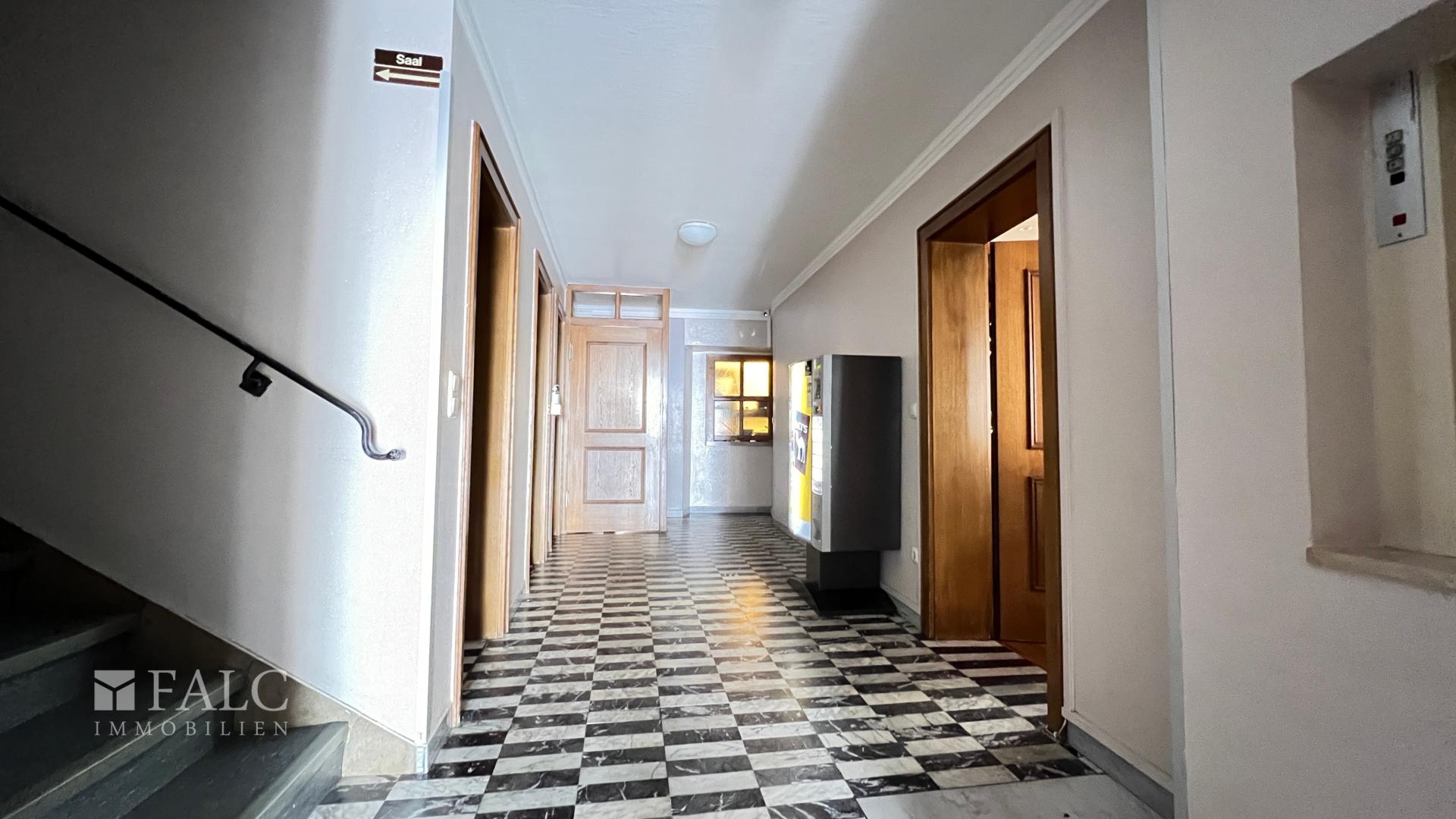 Im Erdgeschoss befindet sich ein großzügiger Saal für Veranstaltungen mit einer Fläche von etwa 100 Quadratmetern.
