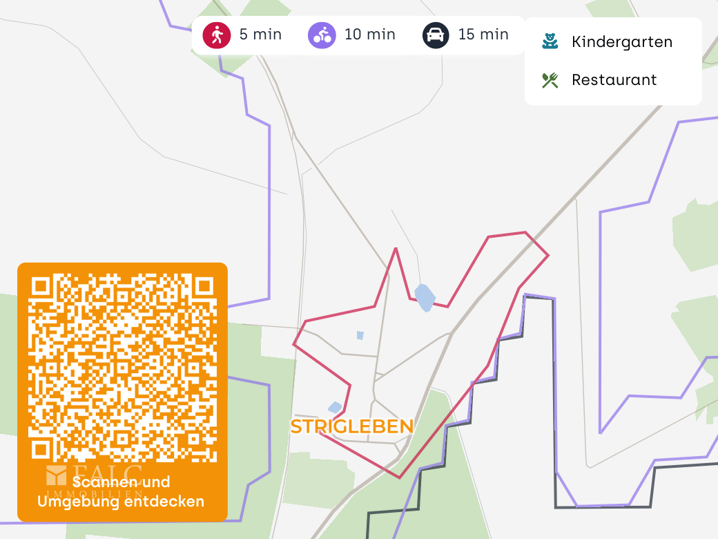 Die Umgebung des Ortsteils Strigleben zeichnet sich durch weite Wiesen, Felder und eine naturnahe Lage mit Blick auf das angrenzende Moor aus.