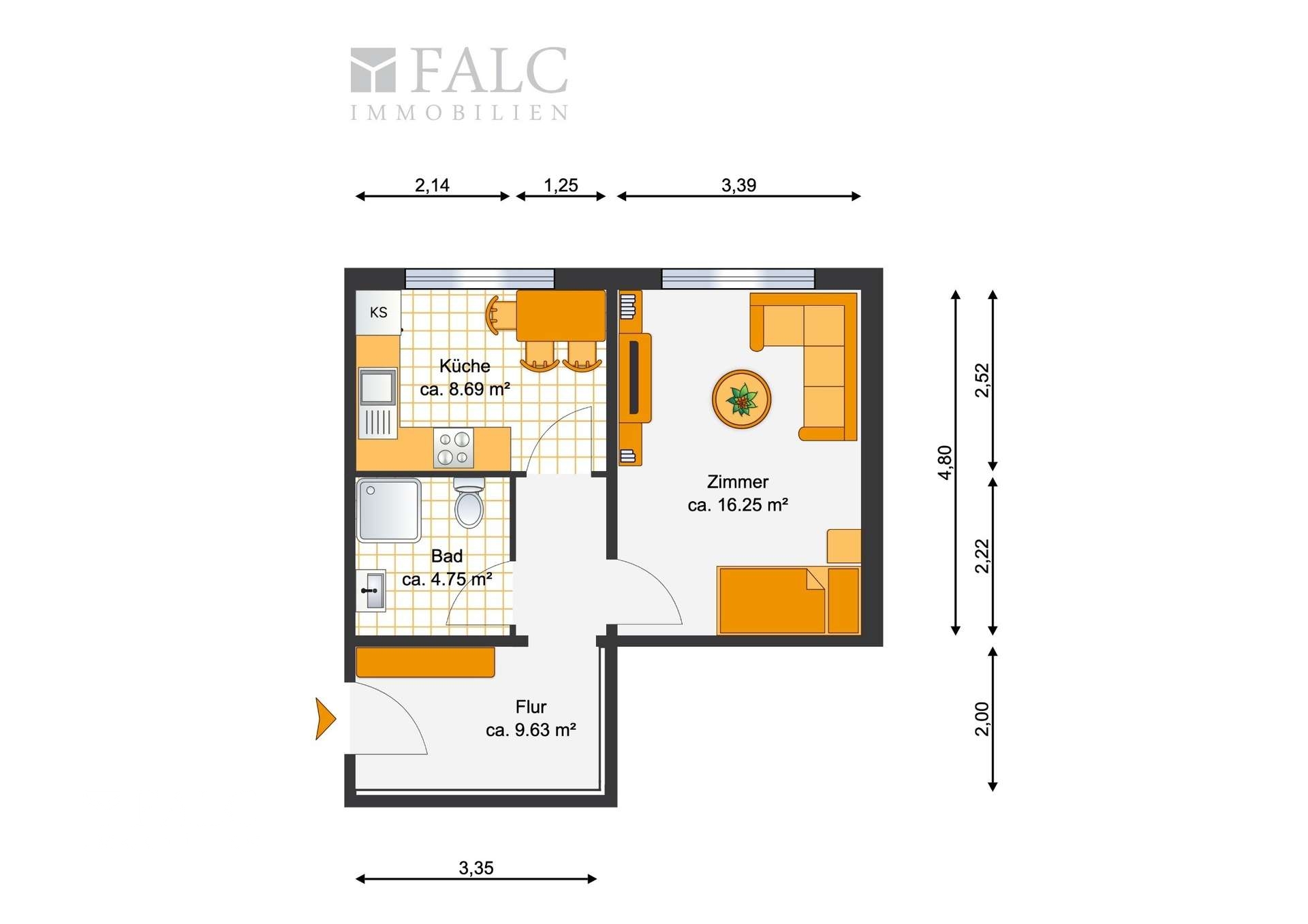 Die Wohnung empfängt Sie in einer hellen und freundlichen Atmosphäre. Der Wohn- und Schlafraum ist mit hochwertigem Parkettboden ausgestattet, während Flur, Küche und Bad mit modernen Fliesen versehen sind.
