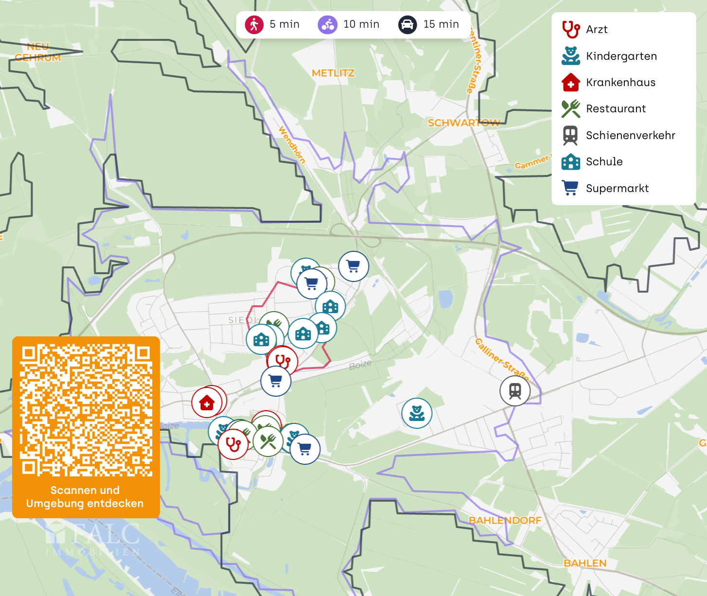 Pendler profitieren von der guten Anbindung: Der Boizenburger Bahnhof ist in nur 15-20 Minuten mit dem Bus erreichbar, und die Autobahn A24 sorgt für eine schnelle Verbindung in benachbarte Städte. Der nächstgelegene internationale Flughafen in Hamburg ist ebenfalls gut erreichbar und bietet zahlreiche nationale und internationale Flugverbindungen.