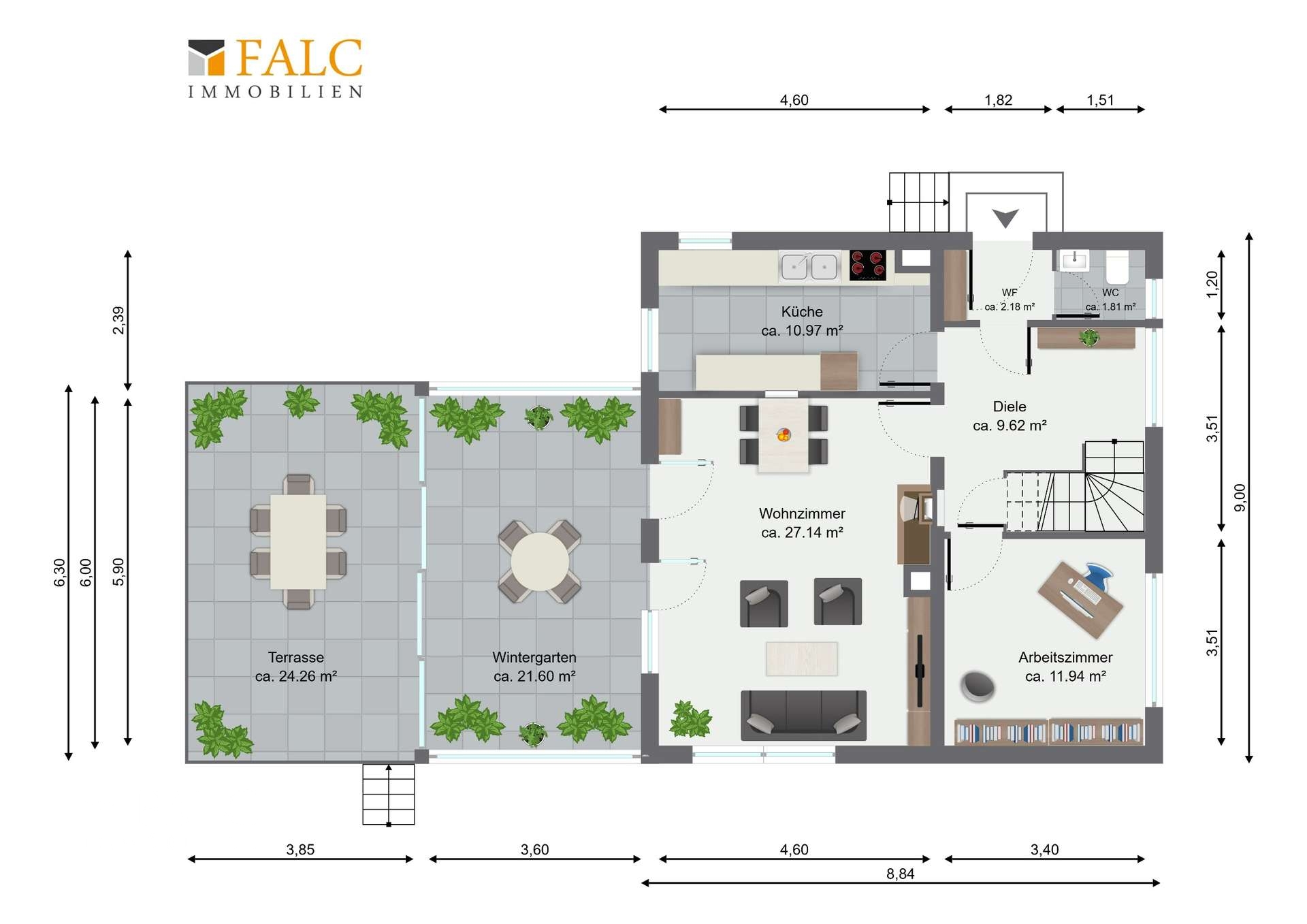Besuchen Sie uns auch auf unserer Homepage unter www.falcimmo.de. Dort finden Sie in der Rubrik "Immobiliensuche" nicht nur unseren Onlinesuchauftrag, sondern auch viele weitere nützliche Informationen für Kaufinteressenten und Eigentümer.