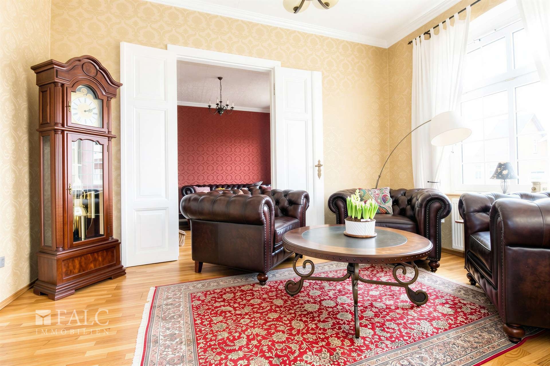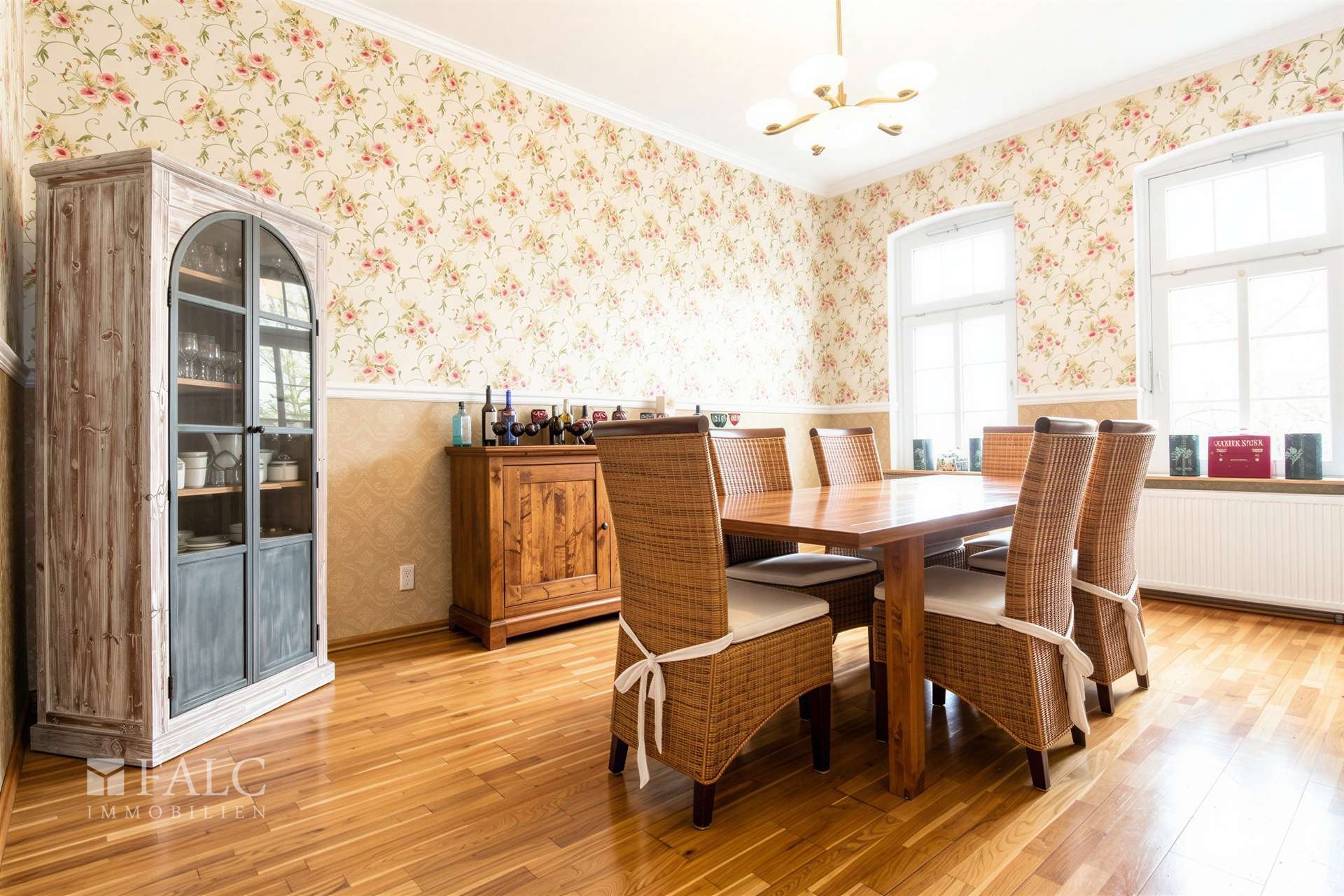 Dieses Mehrfamilienhaus aus dem Baujahr 1902 bietet insgesamt ca. 218 m² Wohnfläche und ist in zwei Wohneinheiten aufgeteilt. Der Rundgang beginnt im Erdgeschoss im Windfang, der bereits einen schönen Blick in den Garten freigibt und als praktische Pufferzone für Jacken und Schuhe dient. Von hier geht es in die zentrale Diele, von der aus die Räume gut erreichbar sind.