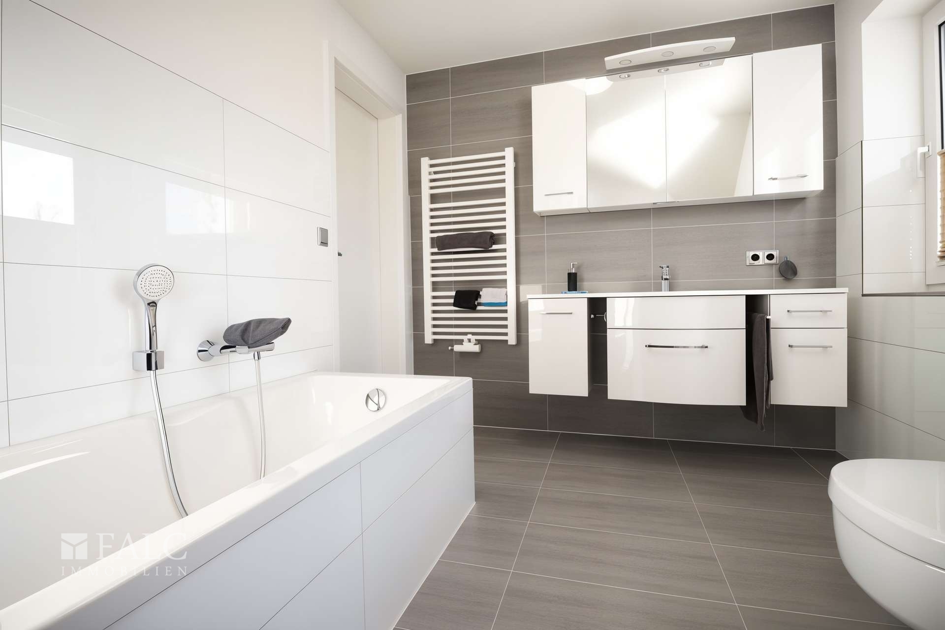 Beim Betreten dieses einladenden Hauses aus dem Jahr 1994 gelangen Sie zunächst in einen großzügigen Flur, der Ihnen Zugang zu den verschiedenen Bereichen des Erdgeschosses bietet. Direkt zur Rechten befindet sich ein modernes Badezimmer mit Dusche, ideal für Gäste oder den täglichen Gebrauch. Die Fußbodenheizung im Flur und in beiden Badezimmern sorgt für wohlige Wärme und erhöht den Wohnkomfort erheblich.
