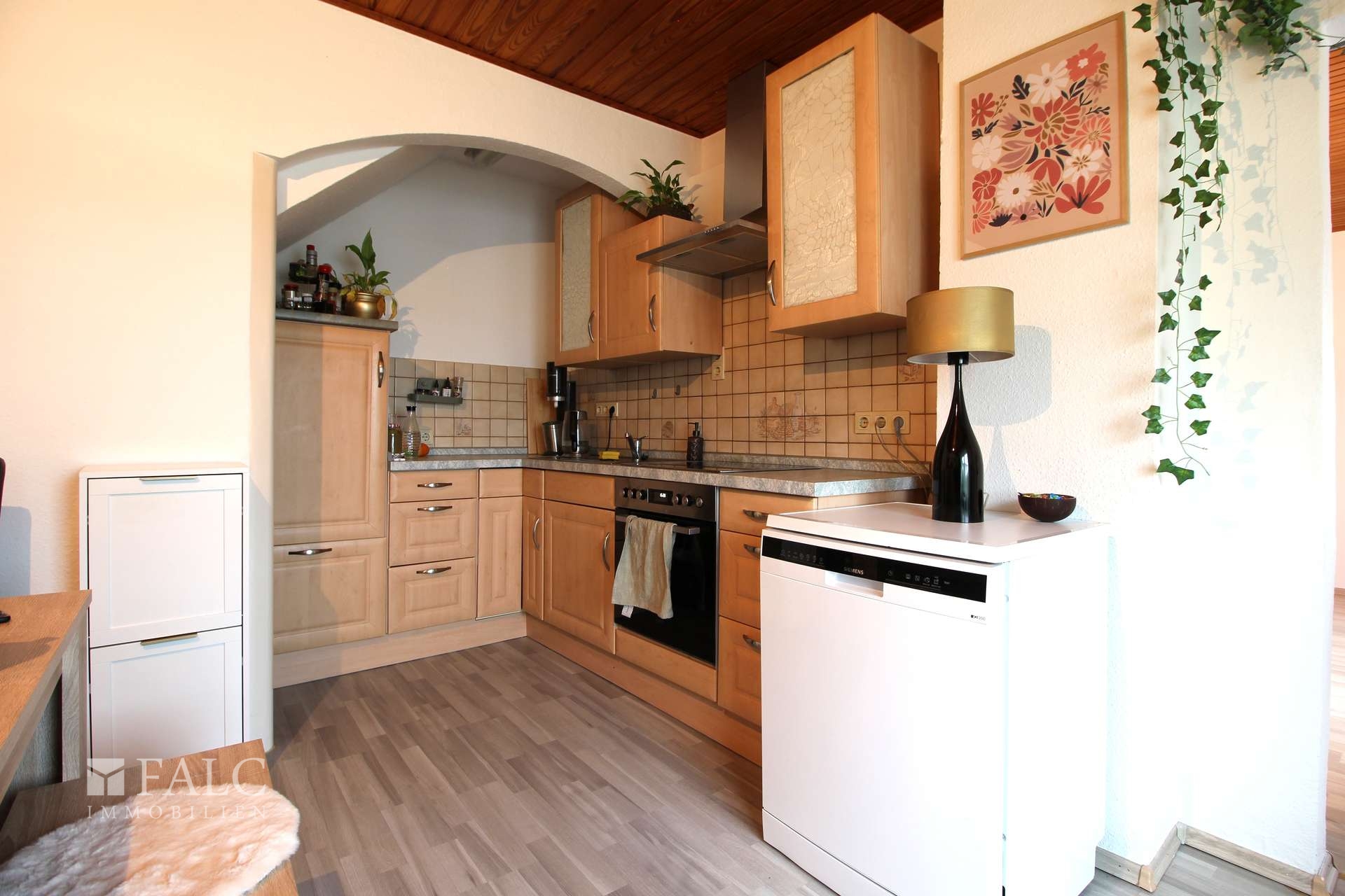 - Küche mit Einbaugeräten wie Backofen Kochfeld Dunstabzug im Dachgeschoss