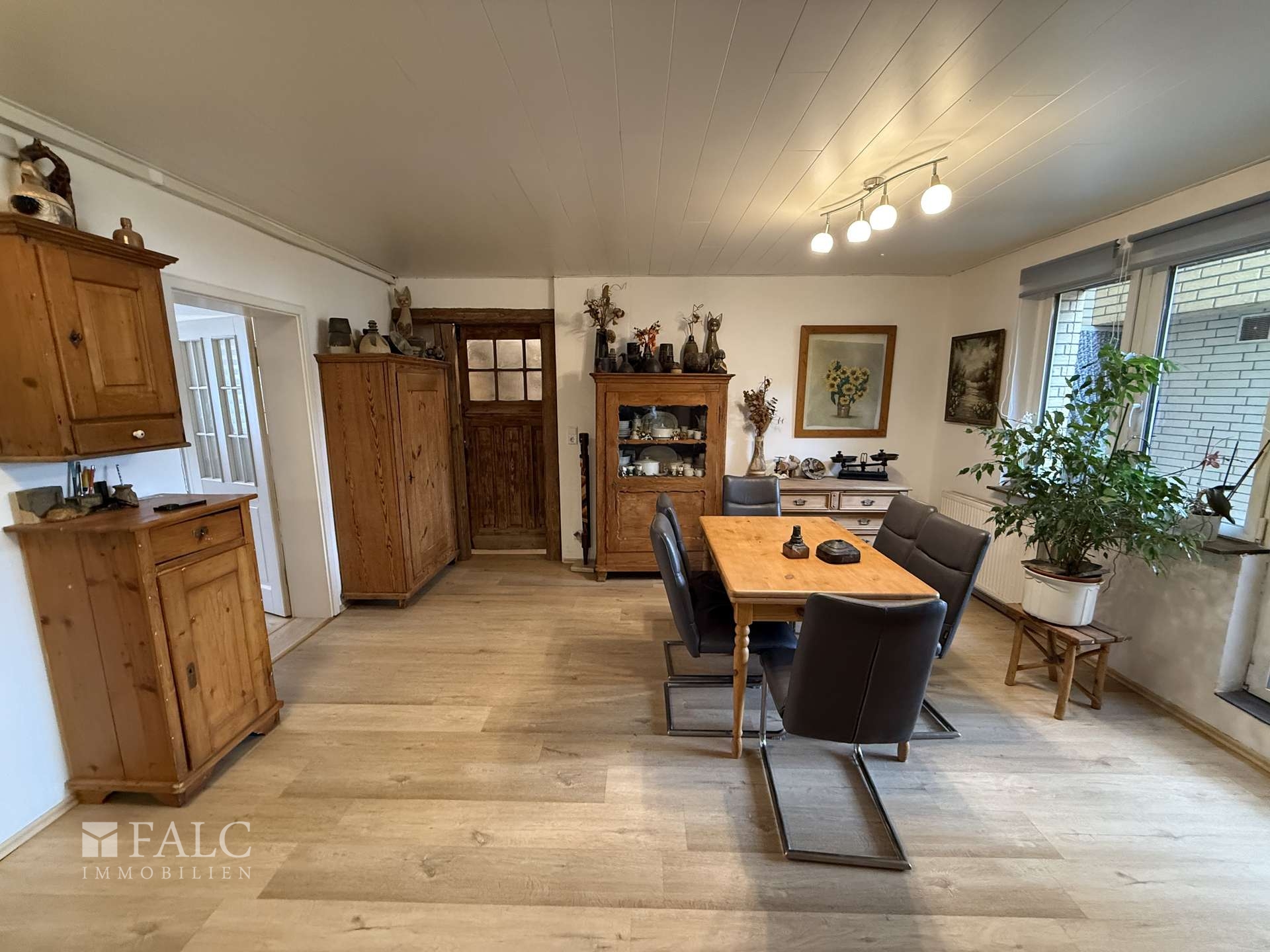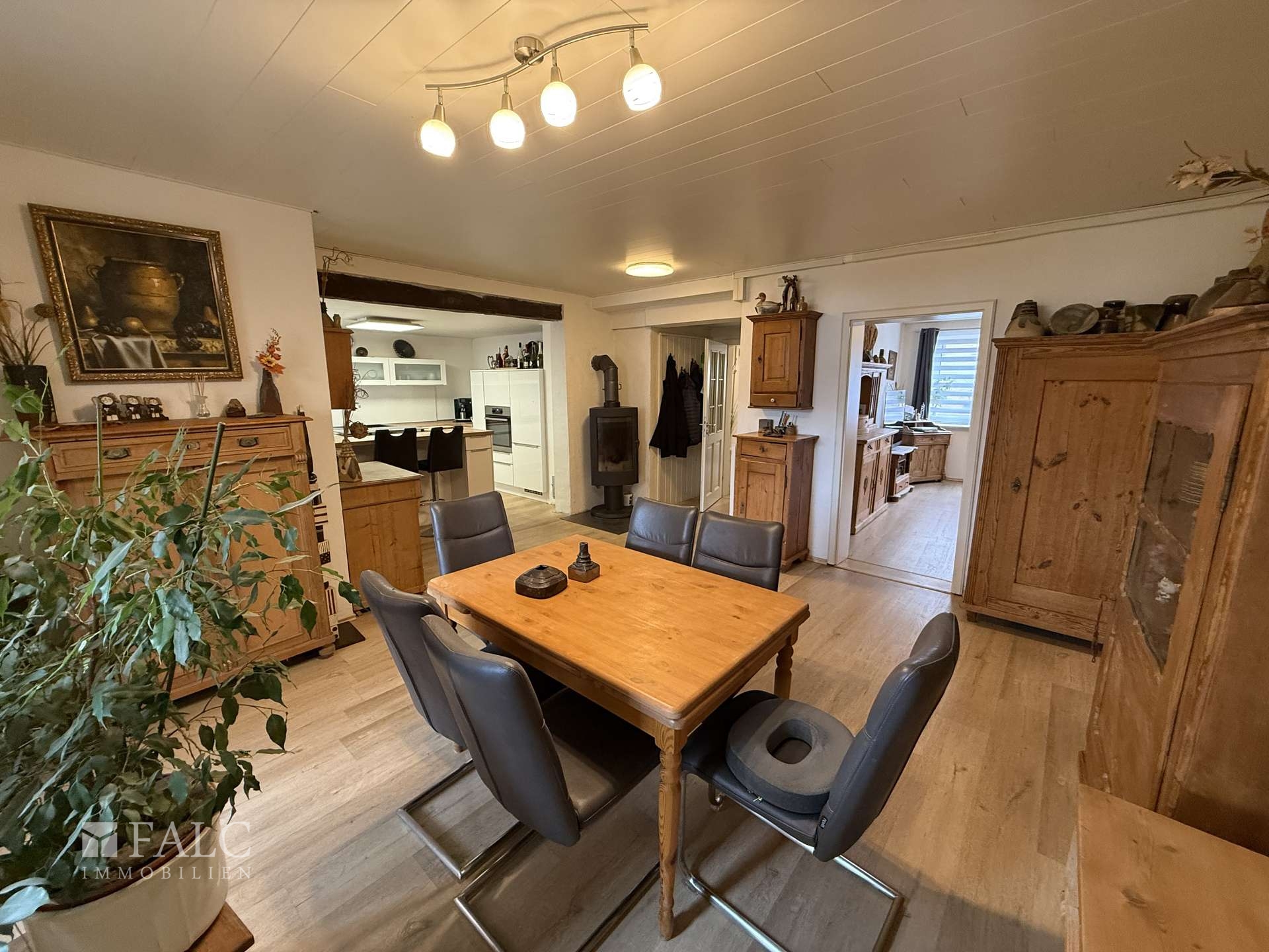 Beim Betreten dieses einladenden Hauses aus dem Jahr 1980 gelangen Sie zunächst in einen großzügigen Eingangsbereich, von dort aus ist der offene Essbereich nahtlos mit der modernen Küche verbunden, die durch ihre offene Gestaltung den Blick in den Garten freigibt. Diese Raumaufteilung fördert ein kommunikatives Miteinander und ist ideal für gesellige Abende mit Familie und Freunden. Die Küche ist funktional ausgestattet und bietet ausreichend Platz für kulinarische Aktivitäten oder einen langen Abend mit Freunden vor dem Kamin.
