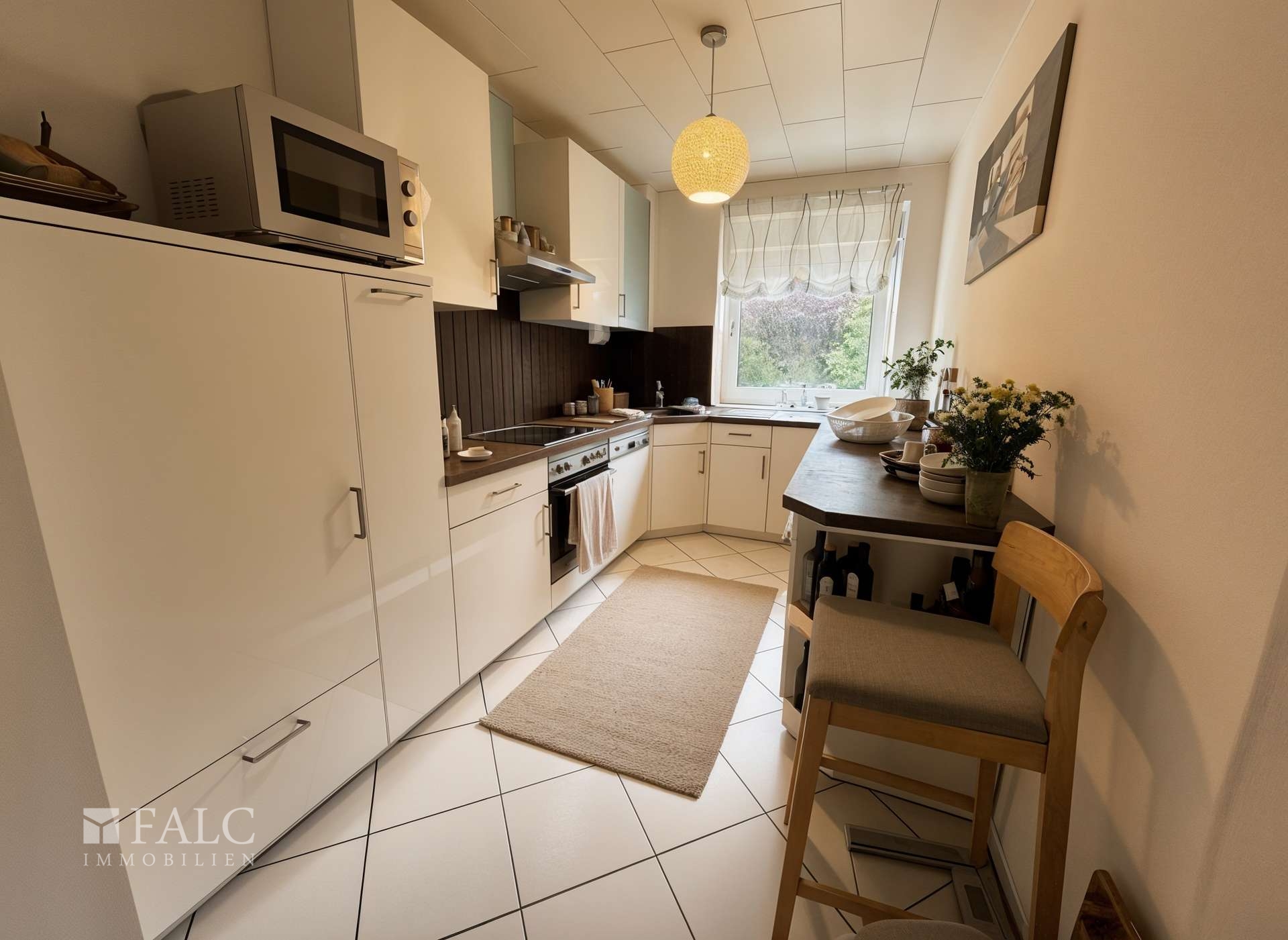 Die separate Küche ist funktional gestaltet und ermöglicht eine klare Trennung von Wohn- und Kochbereich, was insbesondere bei Familien oder Wohngemeinschaften geschätzt wird.