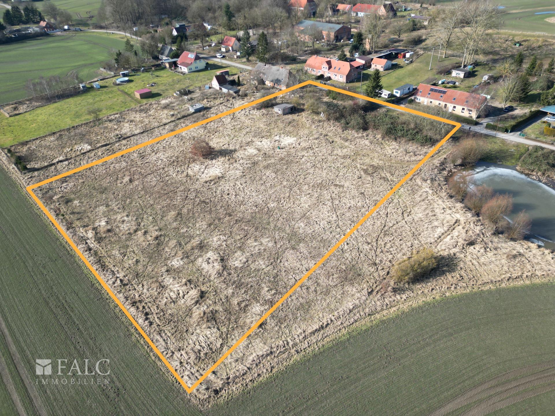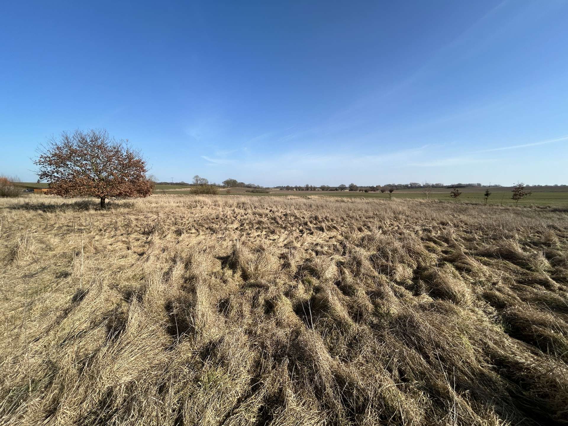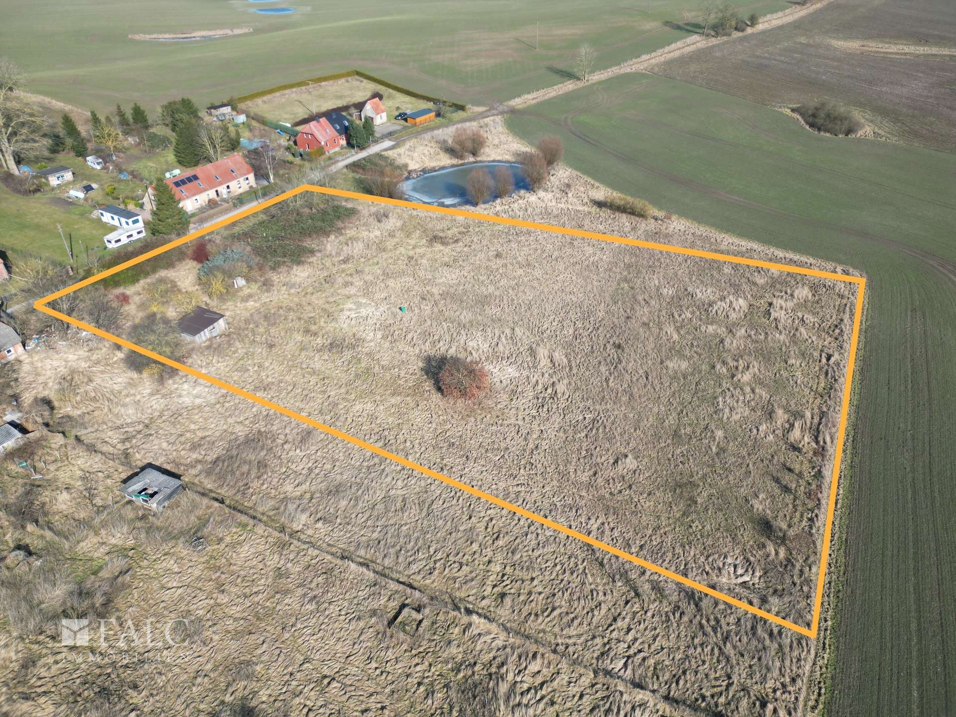 Das Ausstattungsniveau ist hier vor allem durch die großzügige Grundstücksfläche und die klare, weitläufige Nutzbarkeit geprägt. Angeboten wird ein unbebaut wirkendes Areal mit ca. 8600 m², das sich als offene Wiesen und Brachfläche darstellt und damit viel Spielraum für unterschiedliche Nutzungskonzepte bietet. Die Fläche ist überwiegend eben bis leicht modelliert und von freier Landschaft umgeben, wodurch ein ruhiges, unverstelltes Umfeld entsteht. Auf den Luftaufnahmen ist die Grundstücksgrenze markiert, was die Dimensionen und den Zuschnitt gut nachvollziehbar macht. Technische Ausstattungsmerkmale wie Heizung, Bodenbeläge, Fenster oder gebäudebezogene Installationen sind nicht Bestandteil des Angebots beziehungsweise aus den vorliegenden Informationen nicht ableitbar, da es sich um eine Freifläche ohne dargestellte Innenausstattung handelt. Als praktisches Detail ist eine Zuwegung über den angrenzenden Straßenbereich erkennbar, was die Erreichbarkeit im Alltag unterstützt.