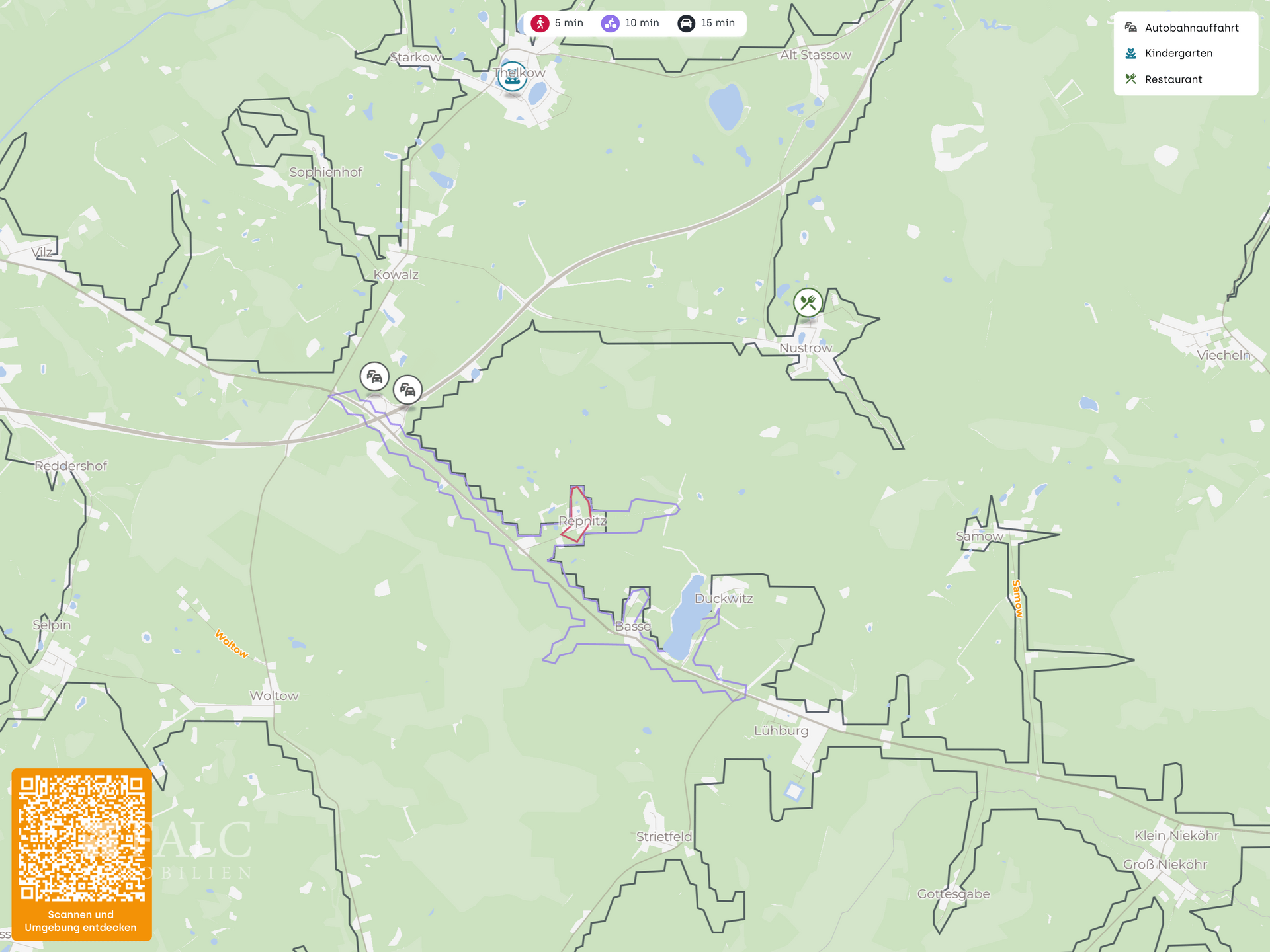 Die Dorfrandlage des Grundstücks sorgt für eine besonders naturnahe und ruhige Wohnqualität mit geringem Verkehrsaufkommen. Gleichzeitig profitieren zukünftige Eigentümer von der zentralen Lage zwischen mehreren regionalen Knotenpunkten. Die Umgebung lädt zu vielfältigen Freizeitaktivitäten in der Natur ein, wie Spaziergänge, Radtouren oder das Genießen der weiten Landschaft Mecklenburg Vorpommerns.