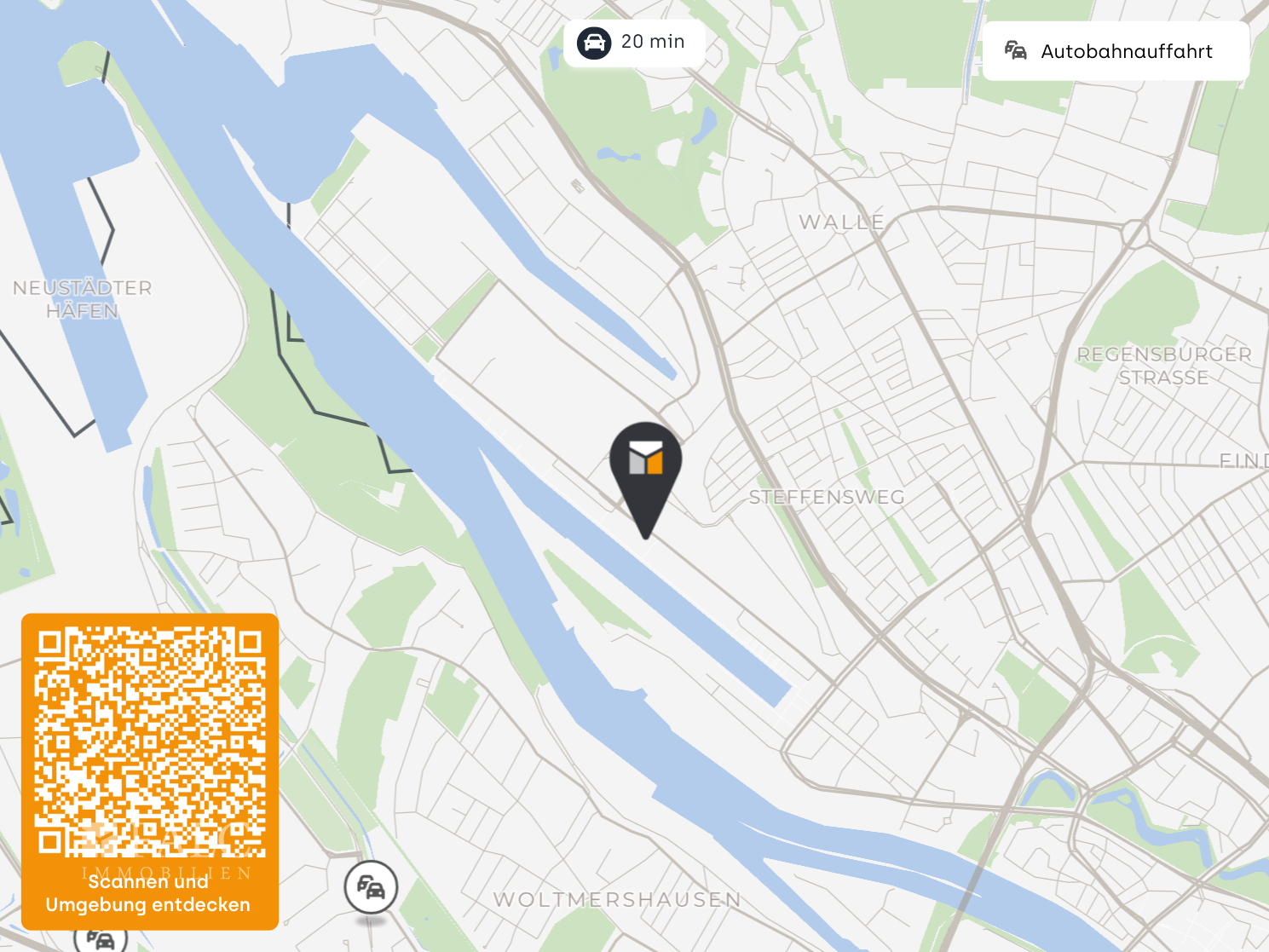 Die Immobilie liegt in einem etablierten Gewerbeumfeld in der Bremer Überseestadt und bietet damit eine Adresse, die bei Kunden, Mitarbeitenden und Geschäftspartnern sofort professionell wirkt. Das Umfeld ist geprägt von modernen Büro- und Dienstleistungsnutzungen sowie einer guten Nahversorgung, was den Arbeitsalltag spürbar erleichtert.