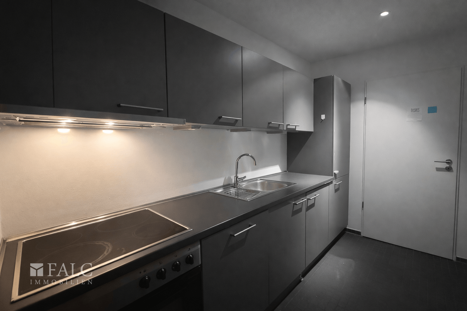 Die Bürofläche präsentiert sich in einem modernen, angenehm ruhigen Ausstattungsniveau und eignet sich durch ihre offene Wirkung ebenso wie durch klar abtrennbare Bereiche für konzentriertes Arbeiten und Besprechungen. Als Bodenbelag ist durchgehend ein Holz Dielenboden ausgeführt, der den Räumen eine warme, professionelle Anmutung gibt. Großzügige, bodentiefe Fensterflächen mit dunklen Rahmen sorgen für viel Tageslicht und eine klare, zeitgemäße Optik. Die Raumstruktur ermöglicht mehrere Arbeitsplätze sowie einen separierbaren Meeting Bereich; Glastrennwände und Türen unterstützen dabei eine transparente Zonierung. Für die technische Infrastruktur sind Kabeltrassen an der Decke sowie zahlreiche Steckdosen und Anschlusspunkte vorhanden. Die Decken sind im industriellen Stil gehalten, mit sichtbaren Installationen und einer geradlinigen Beleuchtung. Eine Teeküche ist integriert und mit Einbauzeile, Spüle, Kochfeld, Backofen, Dunstabzug sowie Stauraum ausgestattet, ideal für den Büroalltag. Ein Flurbereich verbindet die Zonen und unterstützt eine effiziente Erschließung der Fläche.