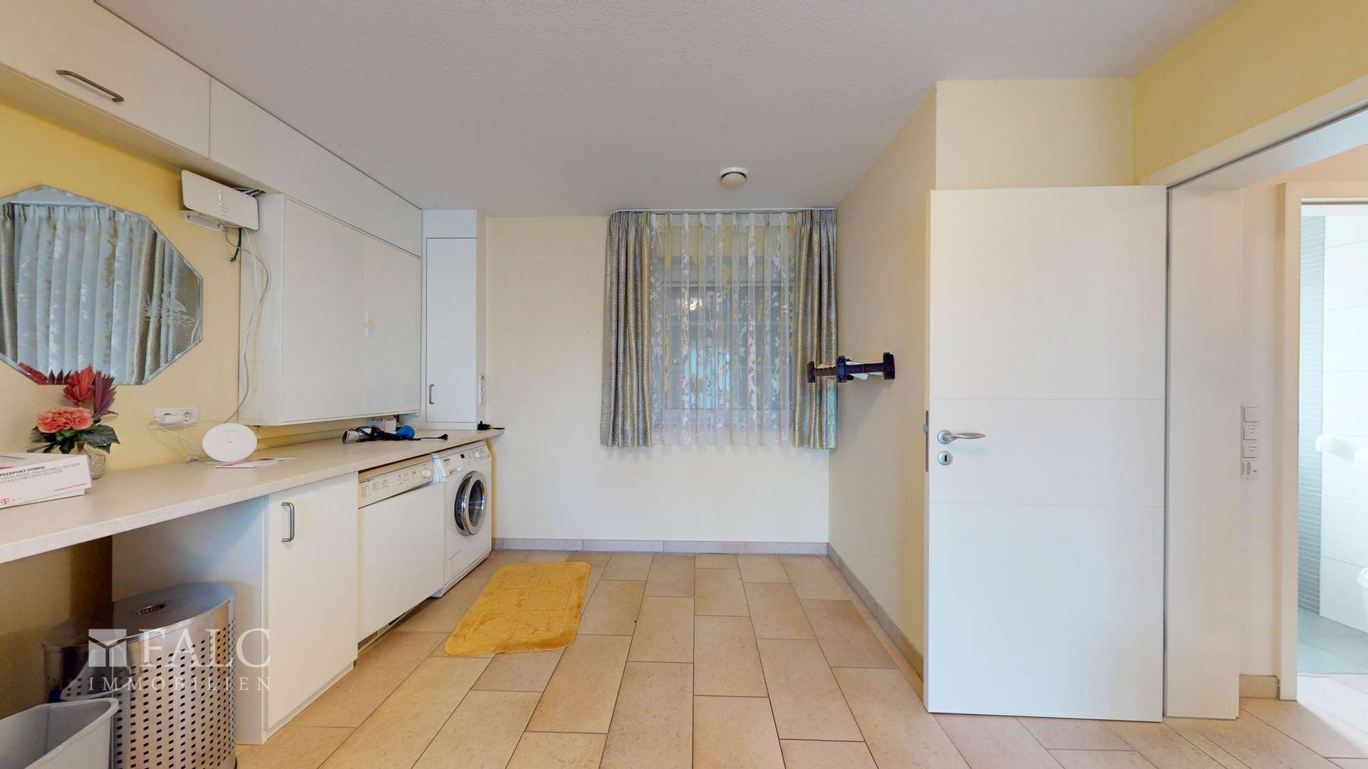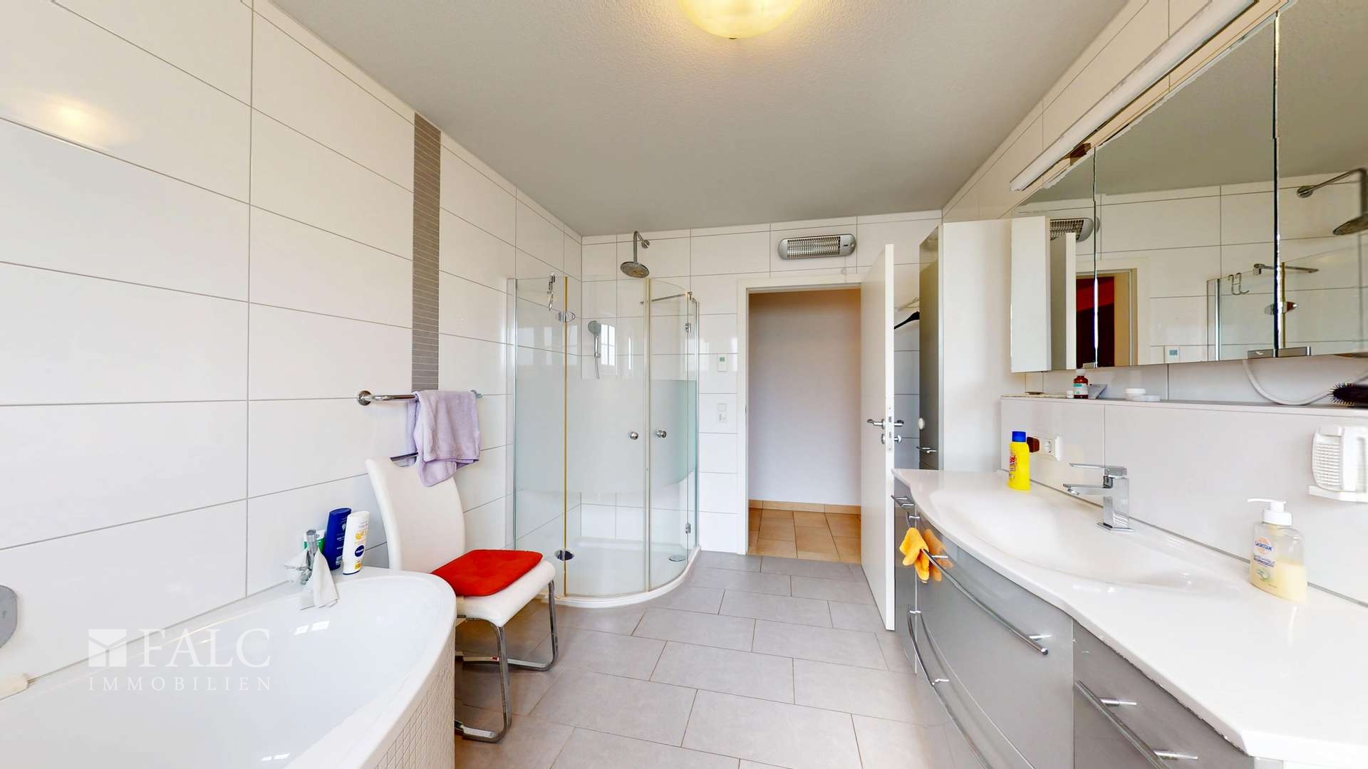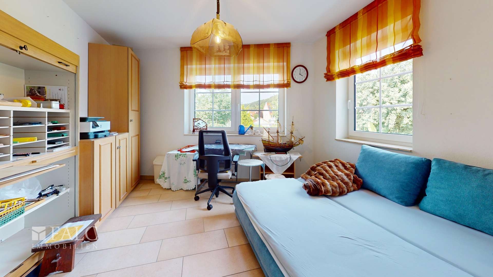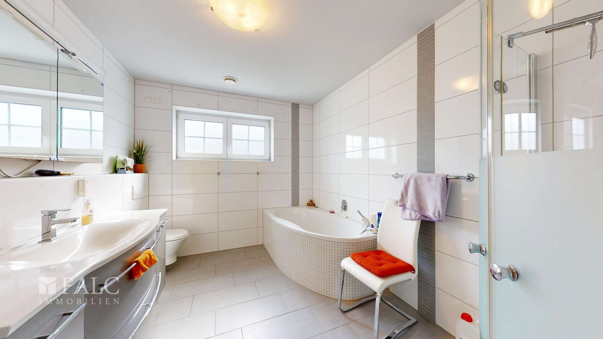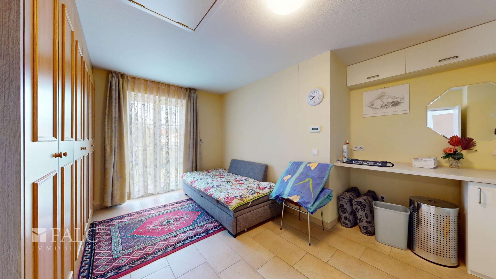 Im Obergeschoss erwarten Sie drei helle Schlafzimmer, die viel Raum für individuelle Gestaltung bieten. Der überaus große Hauswirtschaftsraumverfügt über einen eigenen Zugang zum Balkon, der einen herrlichen Blick in den Garten bietet. Ein modernes Badezimmer mit Badewanne und Dusche sorgt für Entspannung, ebenso wie die kleine Infrarot-Sauna im Flurbereich.