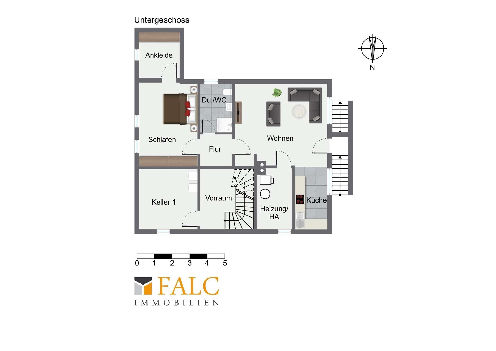 Die zwei Wohnungen teilen sich über 2 Etagen auf, eine im Erdgeschoss, sowie eine im Dachgeschoss.