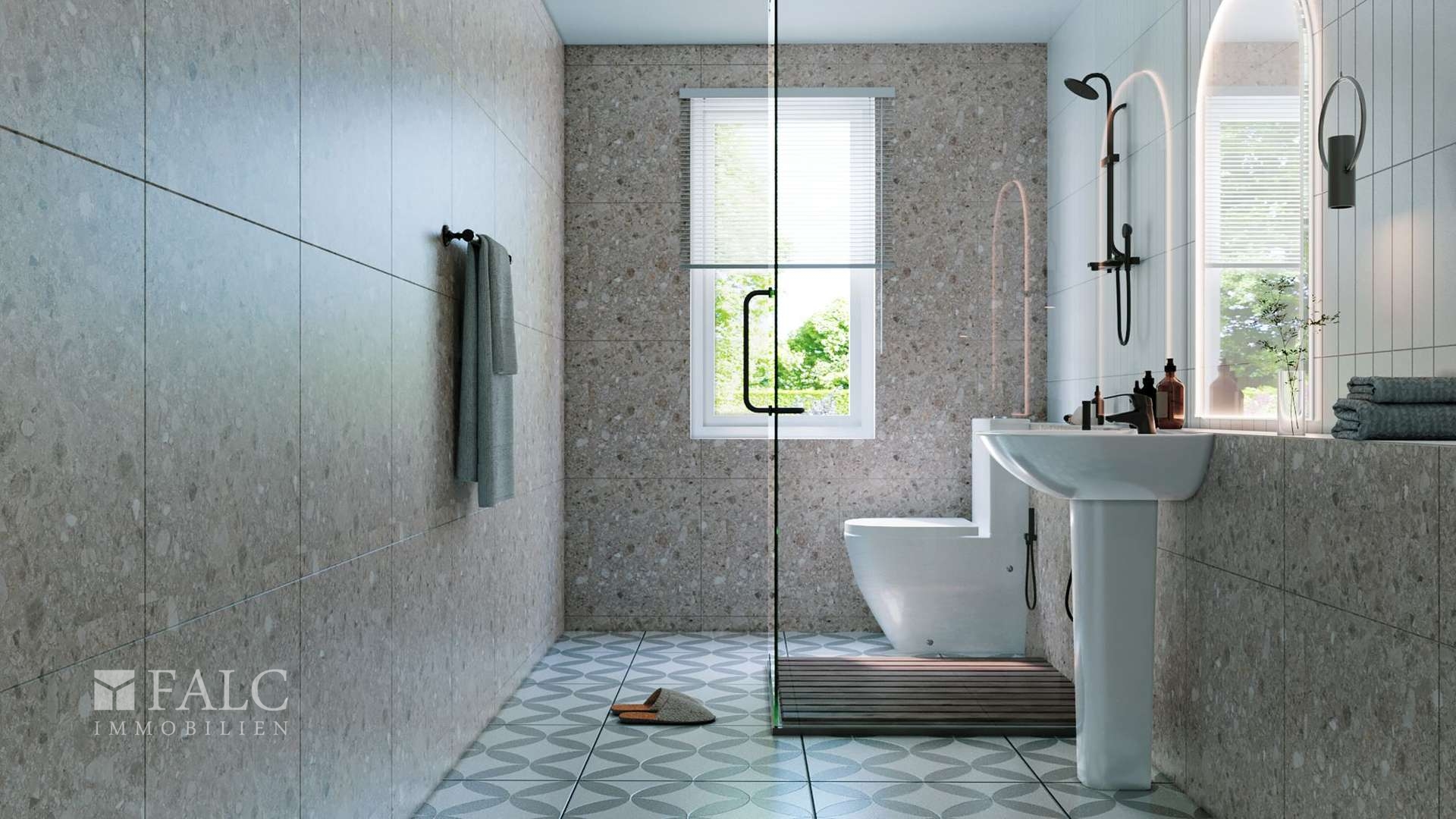 Die hochwertige Ausstattungsserie Renova von Keramag wird in allen Bädern und WC´s installiert. Sie wird mit Grohe Armaturen der Serie Eurosmart kombiniert. Selbstverständlich werden die Bäder höchst komfortabel gestaltet, u.a. mit schwellenfreien Walk-In-Duschen. Für die Waschmaschinen gibt es einen extra Waschraum im Untergeschoss, das Sie bequem über Ihren Fahrstuhl erreichen können.