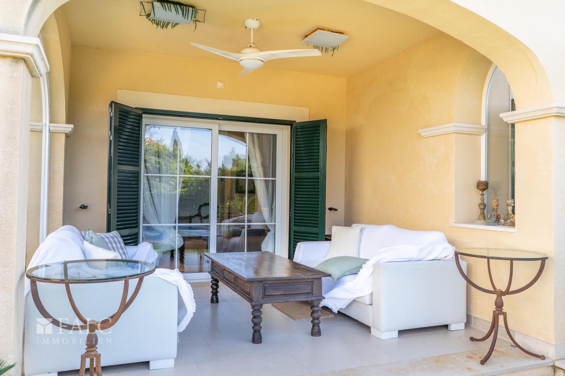 Terrasse im Obergeschoss mit leichtem Meerblick